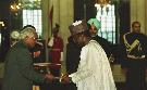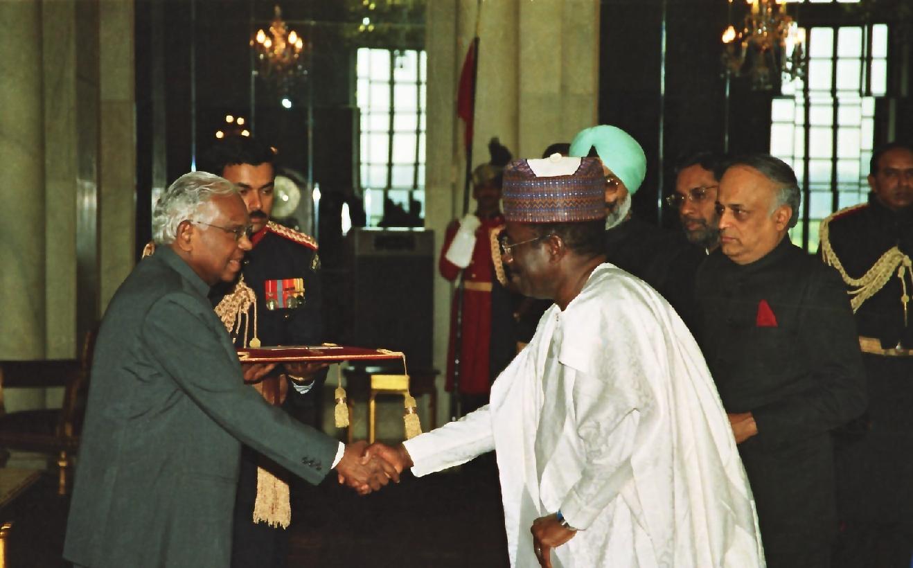 | Caption: | The High Commissioner-Designate of the Federal Republic of Nigeria to India, HE Mr Kabiru Ahmed presenting his credentials to the President of India, Shri K R Narayanan at the Ashok Hall of Rashtrapati Bhavan in New Delhi on Jan 13, 2000 |