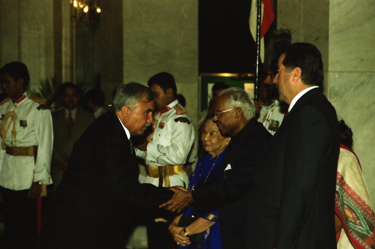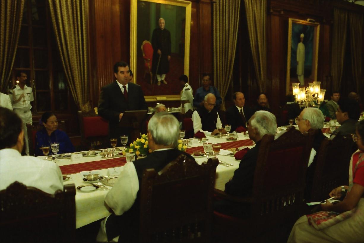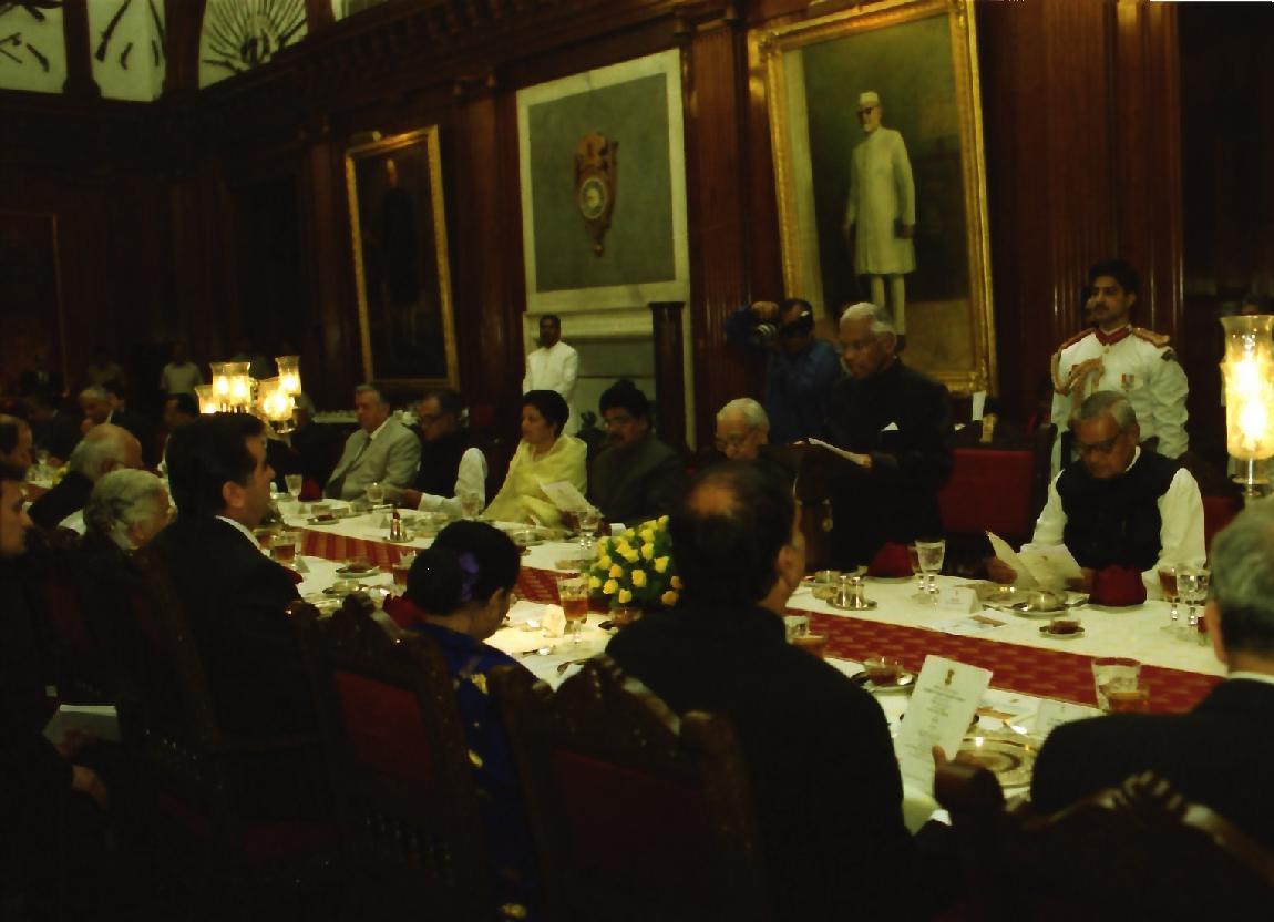 | Caption: | The President of India, Shri K R Narayanan at the Banquet Hosted in Honour of the Distinguished Guests of the President of the Republic of Tajikistan, His Excellency Mr Emomali Sharifovich at the Banquet Hall of Rashtrapati Bhavan in New Delhi on May 10, 2001 |