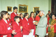 | Caption: | The President of India, Shri K R Narayanan meeting with the National Bravery Awards Winning Children with their Escorts and the Officials of the Indian Council for Child Welfare at the Yellow Drawing Room of Rashtrapati Bhavan in New Delhi on Jan 20, 2000 |