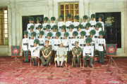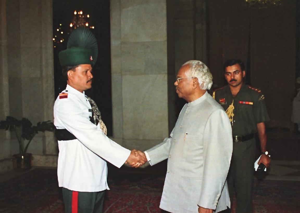 | Caption: | The President of India, Shri K R Narayanan posing for Group Photograph with Band Personnel of Raj Rif Regt Centre Brass Band at the Ashok Hall of Rashtrapati Bhavan in New Delhi on Sep 27, 1999 |
