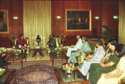 | Caption: | The King of Bhutan, His Majesty Jigme Singh Wangchuck calling on the President of India, Shri K R Narayanan at the North Drawing Room of Rashtrapati Bhavan in New Delhi on May 26, 1999 |