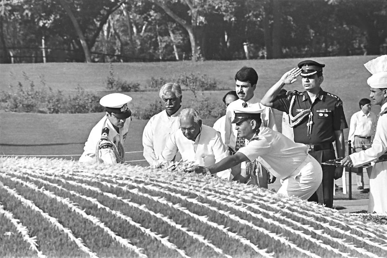 | Caption: | The President of India, Shri K R Narayanan paying homage at the Samadhi of the Former Prime Minister of India, Late Pandit Jawaharlal Nehru on the occasion of the Death Anniversary at Shantivana in New Delhi on May 27, 1999 |