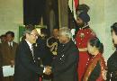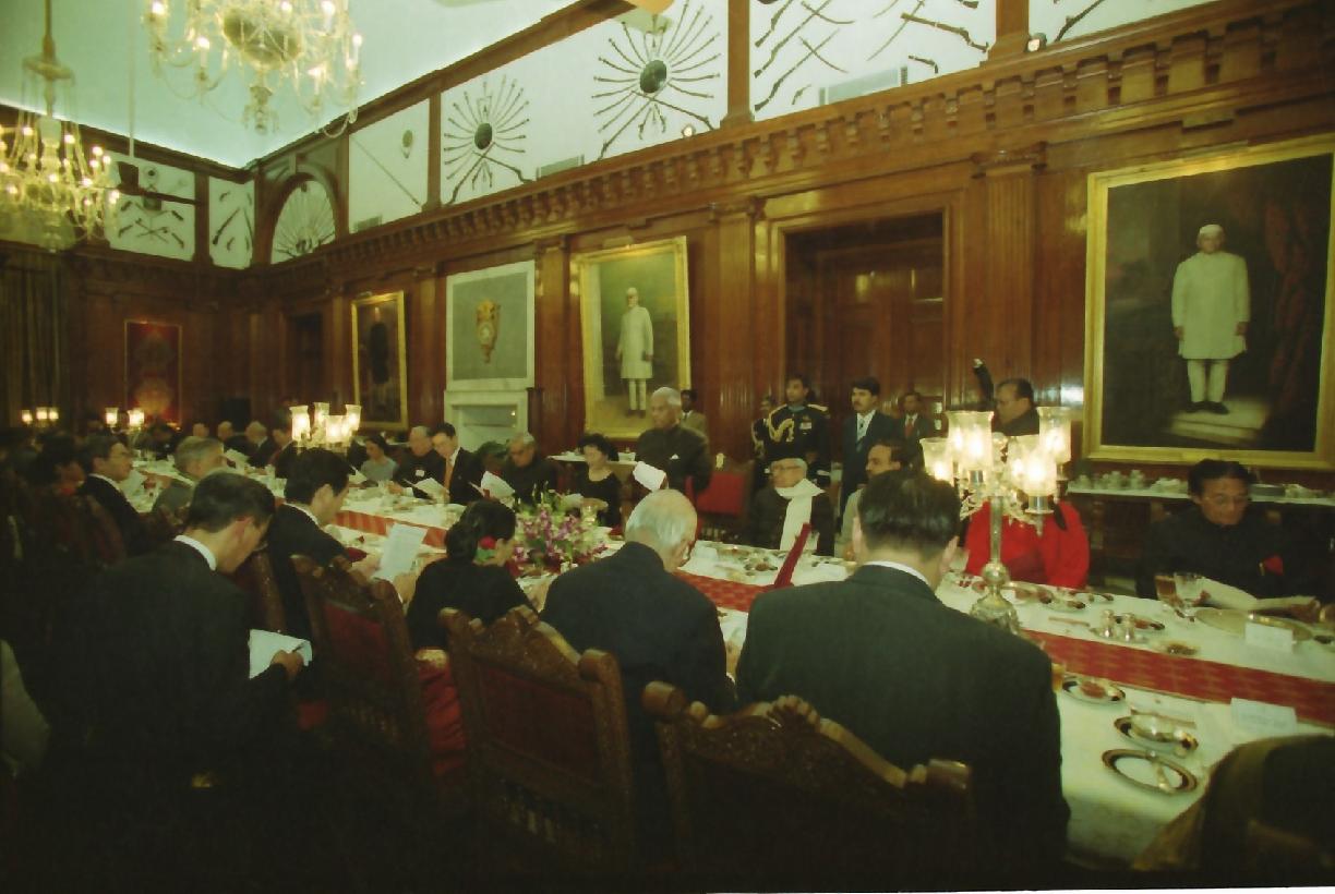 | Caption: | The President of India, Shri K R Narayanan at the Banquet Hosted in Honour of the Distinguished Guests of the President of Mongolia HE Mr Natsagiin Bagabandi and his wife Mme A Oyunbileg at the Banquet Hall of Rashtrapati Bhavan in New Delhi on Jan 03, 2001 |