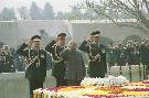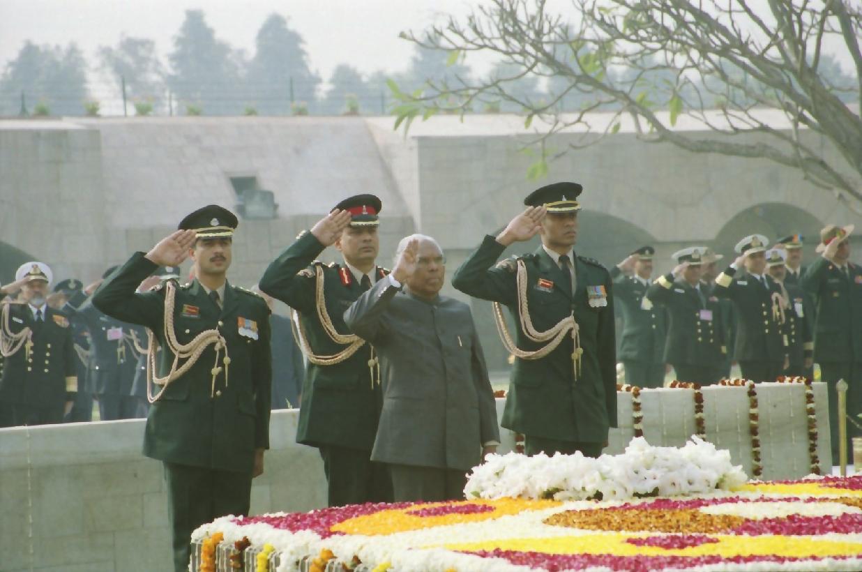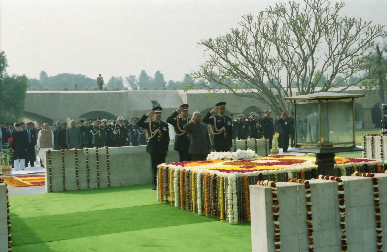 | Caption: | The President of India, Shri K R Narayanan paying homage to the Father of the Nation, Mahatma Gandhi at Rajghat in New Delhi on Jan 30, 2001 |