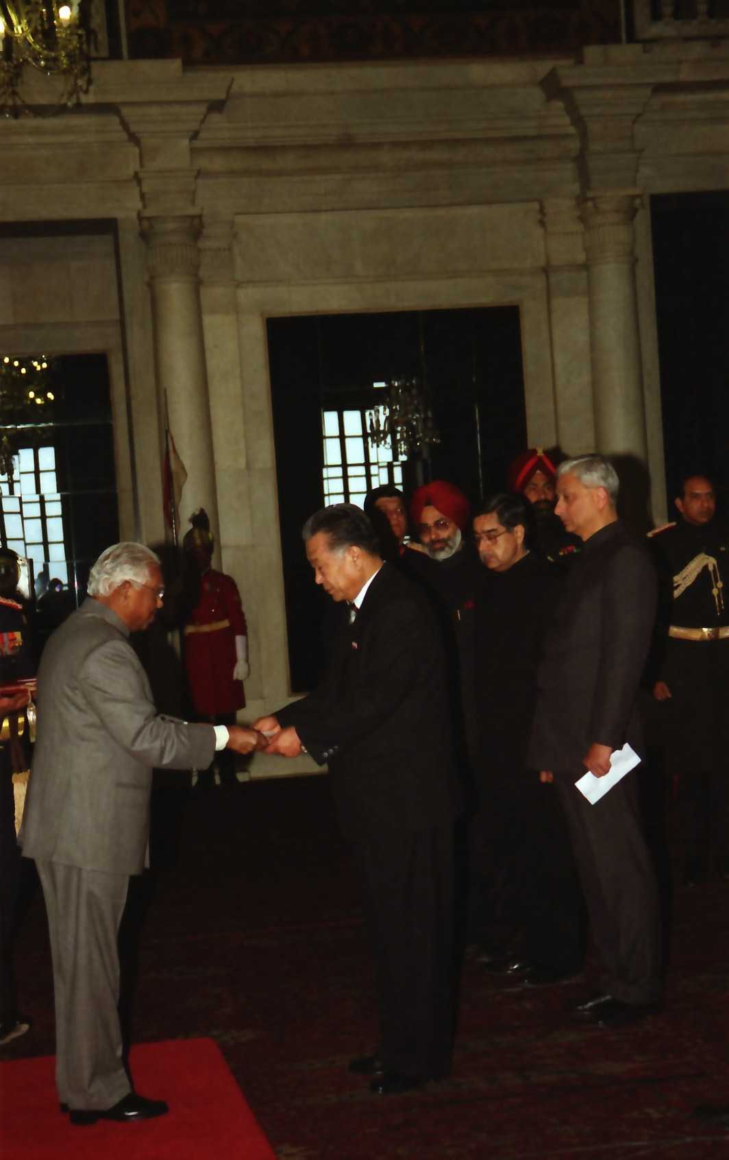 | Caption: | The Ambassador-Designate of the Democratic People s Republic of Korea to India, HE Mr Jang Kwang Son presenting his credentials to the President of India, Shri K R Narayanan at the Ashok Hall of Rashtrapati Bhavan in New Delhi on Jan 09, 2001 |