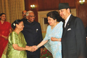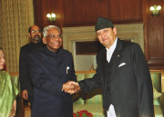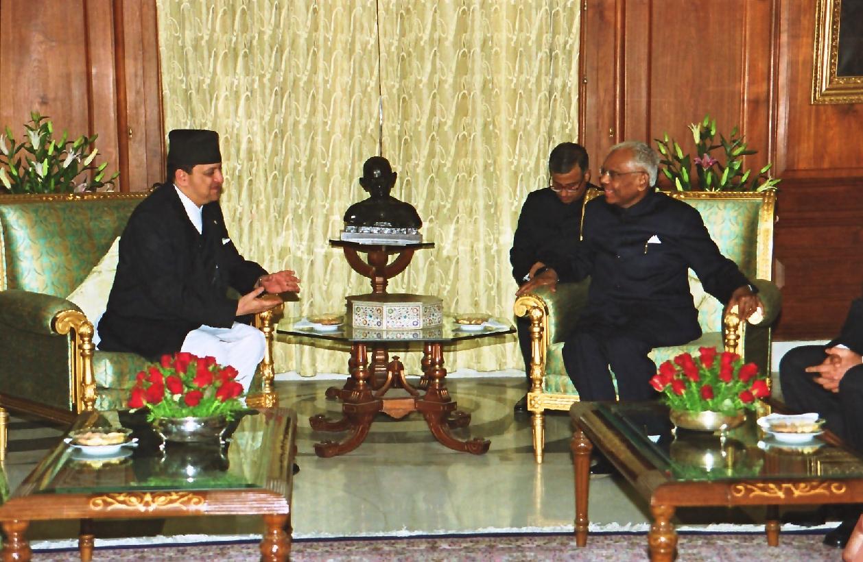 | Caption: | His Majesty King Gyanendra Bir Bikram Shah Dev of Nepal and her Majesty Queen Komal Rajya Laxmi Devi Shah calling on the President of India, Shri K R Narayanan at the North Drawing Room of Rashtrapati Bhavan in New Delhi on June 24, 2002 |