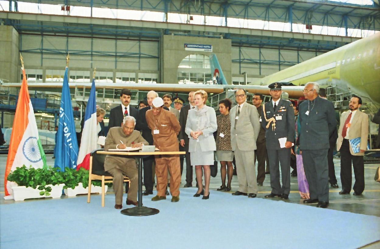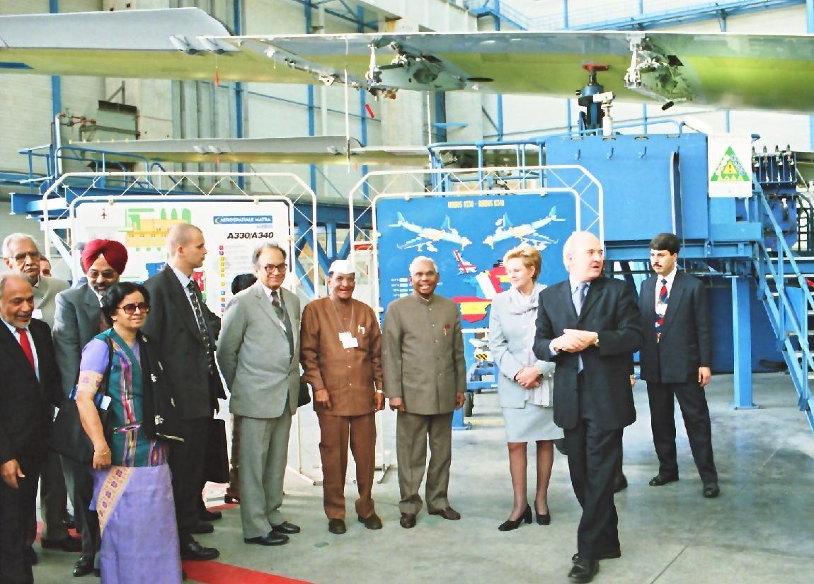 | Caption: | The President of India, Shri K R Narayanan visiting the Aerospace Industry's Airbus Factory with the Tourism Minister of France, HE Ms Michelle Demessine and also Signed the Visitor's Book at Toulouse in France on April 19, 2000 |