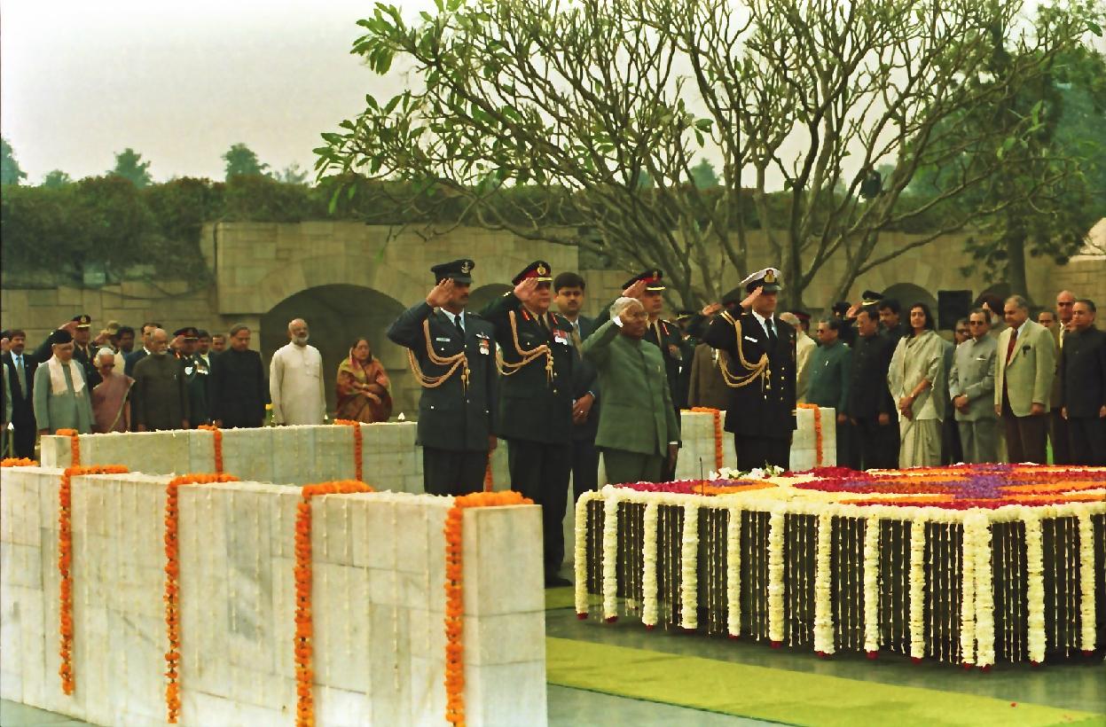 | Caption: | The President of India, Shri K R Narayanan at the Memorial Service on Martyrs Day at Rajghat in New Delhi on Jan 30, 1998 |