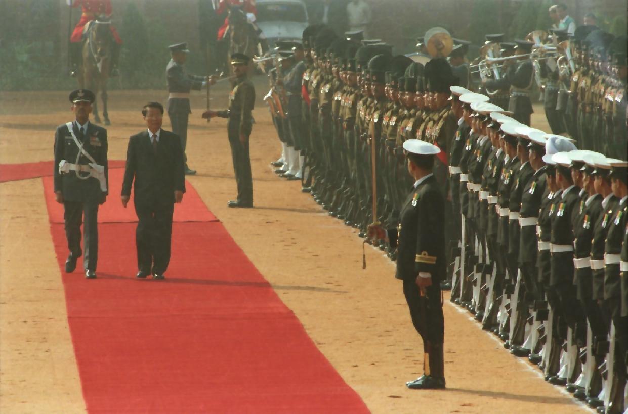 | Caption: | The President of India, Shri K R Narayanan at the Ceremonial Reception of the President of the Socialist Republic of Vietnam, HE Mr Tran Duc Luong and Mrs Nguyen Thi Vinh at the Forecourt of Rashtrapati Bhavan in New Delhi on Dec 01, 1999 |