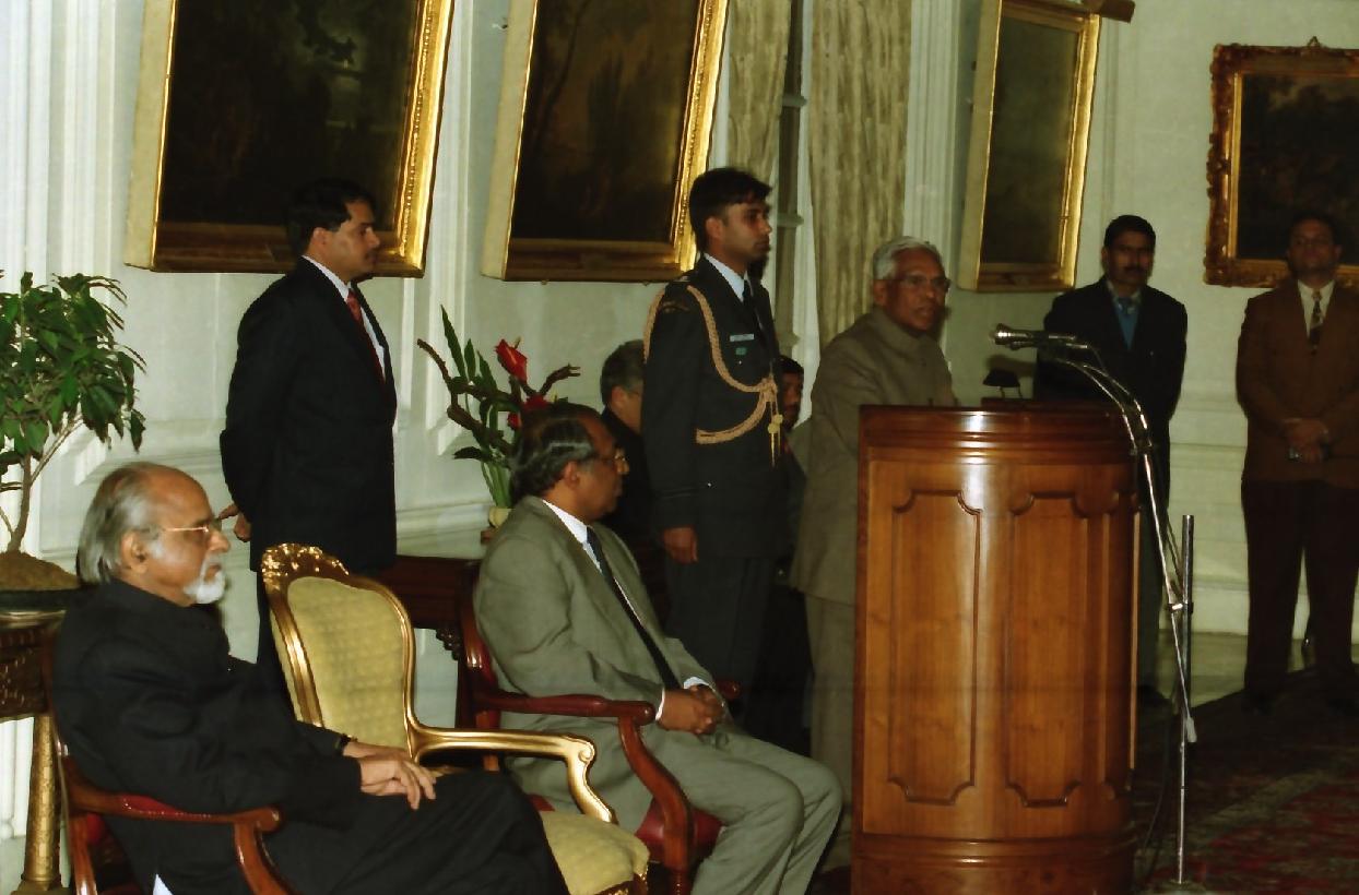 | Caption: | The President of India, Shri K R Narayanan receiving a copy of the Book "EMS Portrait of a Long March" at Rashtrapati Bhavan in New Delhi on Dec 15, 1999 |