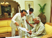 | Caption: | The President of India, Shri K R Narayanan interacting with Shri Parthasarathi with others at Leela Palace in Goa on Dec 26, 1999 |