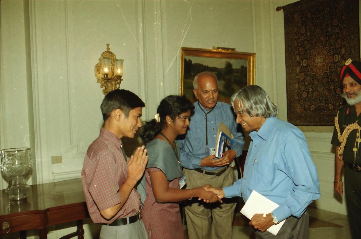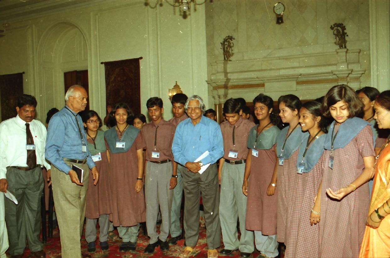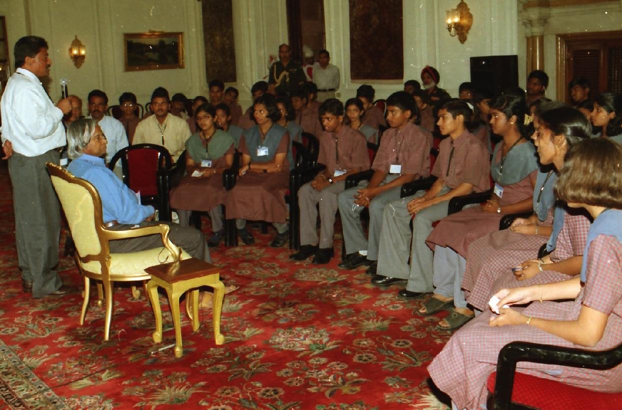| Caption: | The President of India, Dr A P J Abdul Kalam meeting with the Students and Staff from Vasishta School, Madanapale, Andhra Pradesh at the Yellow Drawing Room of Rashtrapati Bhavan in New Delhi on Oct 24, 2002 |