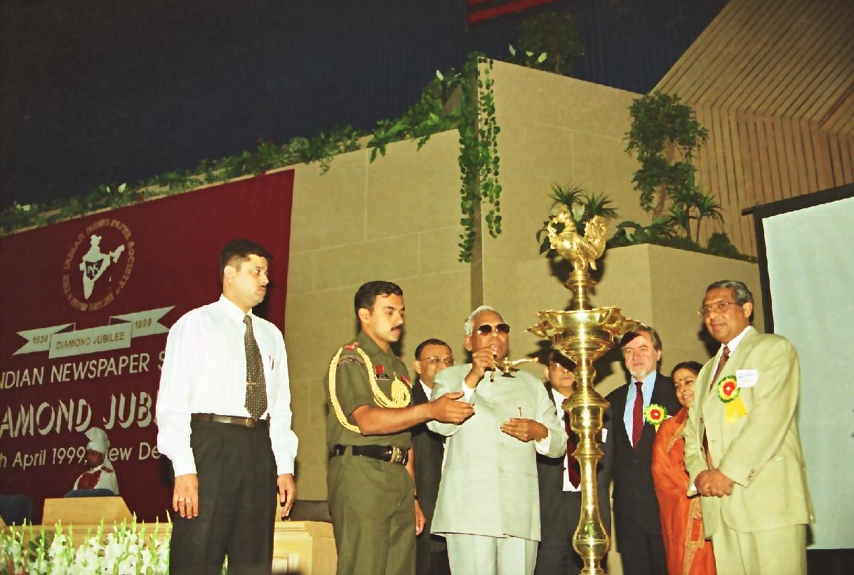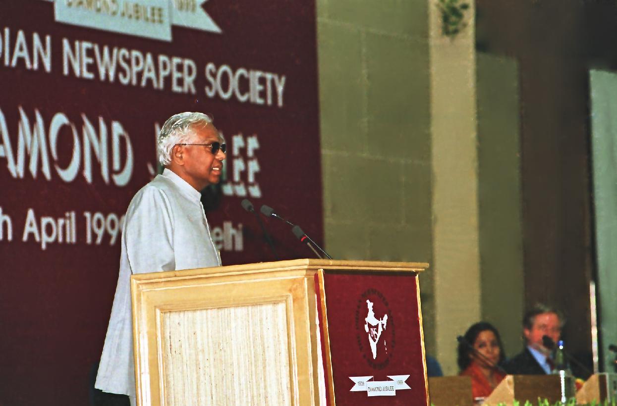 | Caption: | The President of India, Shri K R Narayanan at the Indian Newspaper Society Diamond Jubilee Function at Vigyan Bhavan in New Delhi on April 08, 1999 |