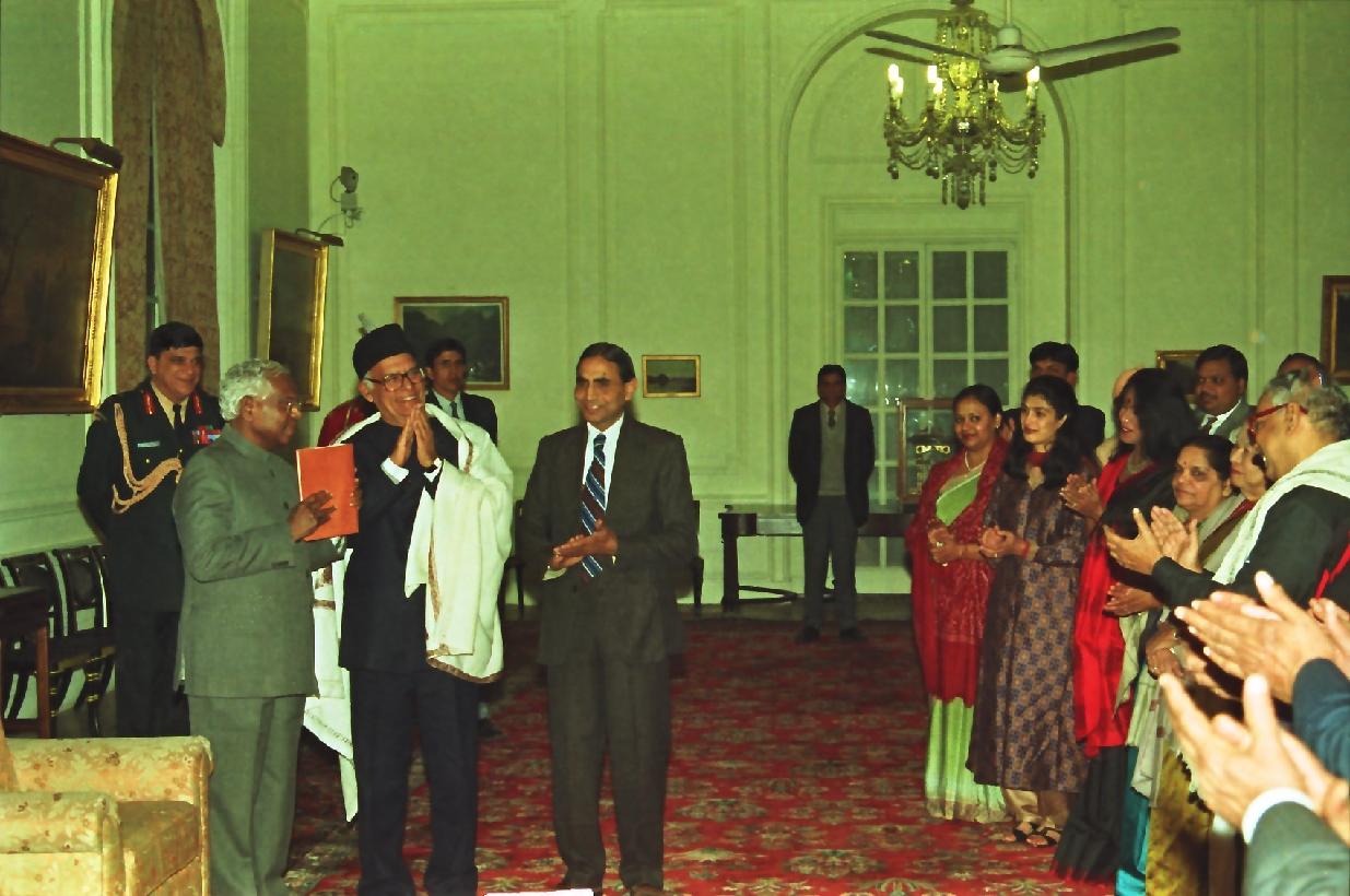 | Caption: | The President of India, Shri K R Narayanan receiving a copy of Shri Chandrajit Yadav Felicitation Volume Social Justice Problems and Perspectives brought out by the National Research Institute of Human Culture at the Yellow Drawing Room of Rashtrapati Bhavan in New Delhi on Jan 08, 1998 |