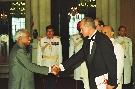 | Caption: | The Ambassador-Designate of Ukraine to India, His Excellency Mr Valcntinc V Adomaitis presenting his credentials to the President of India, Shri K R Narayanan at Rashtrapati Bhavan in New Delhi on Aug 27, 1998 |