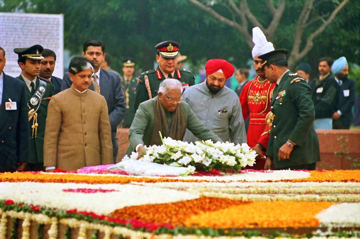 | Caption: | The President of India, Shri K R Narayanan paying homage at the Samadhi of the Former Prime Minister of India, Late Shri Lal Bahadur Shastri on the occasion of his Death Anniversary at Vijay Ghat in New Delhi on Jan 11, 1998 |