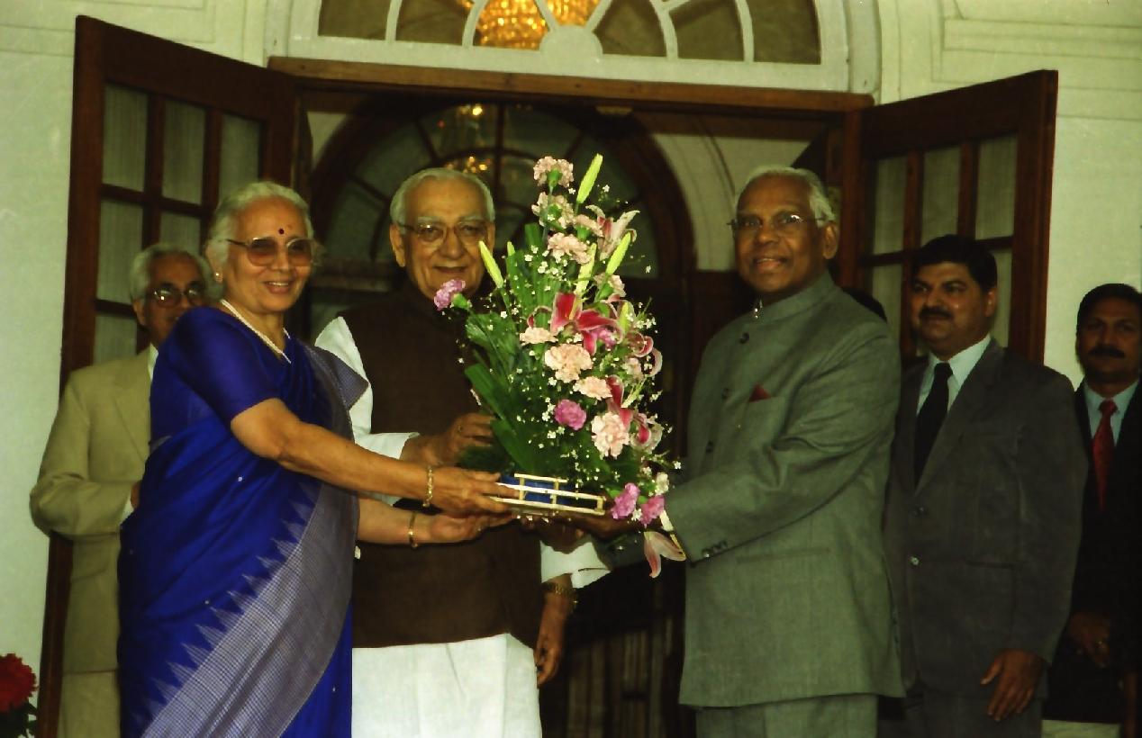 | Caption: | The President of India, Shri K R Narayanan being Greeted by the Vice President of India, Shri Krishan Kant on his Birthday at 6, Maulana Azad Road in New Delhi on Feb 28, 2001 |