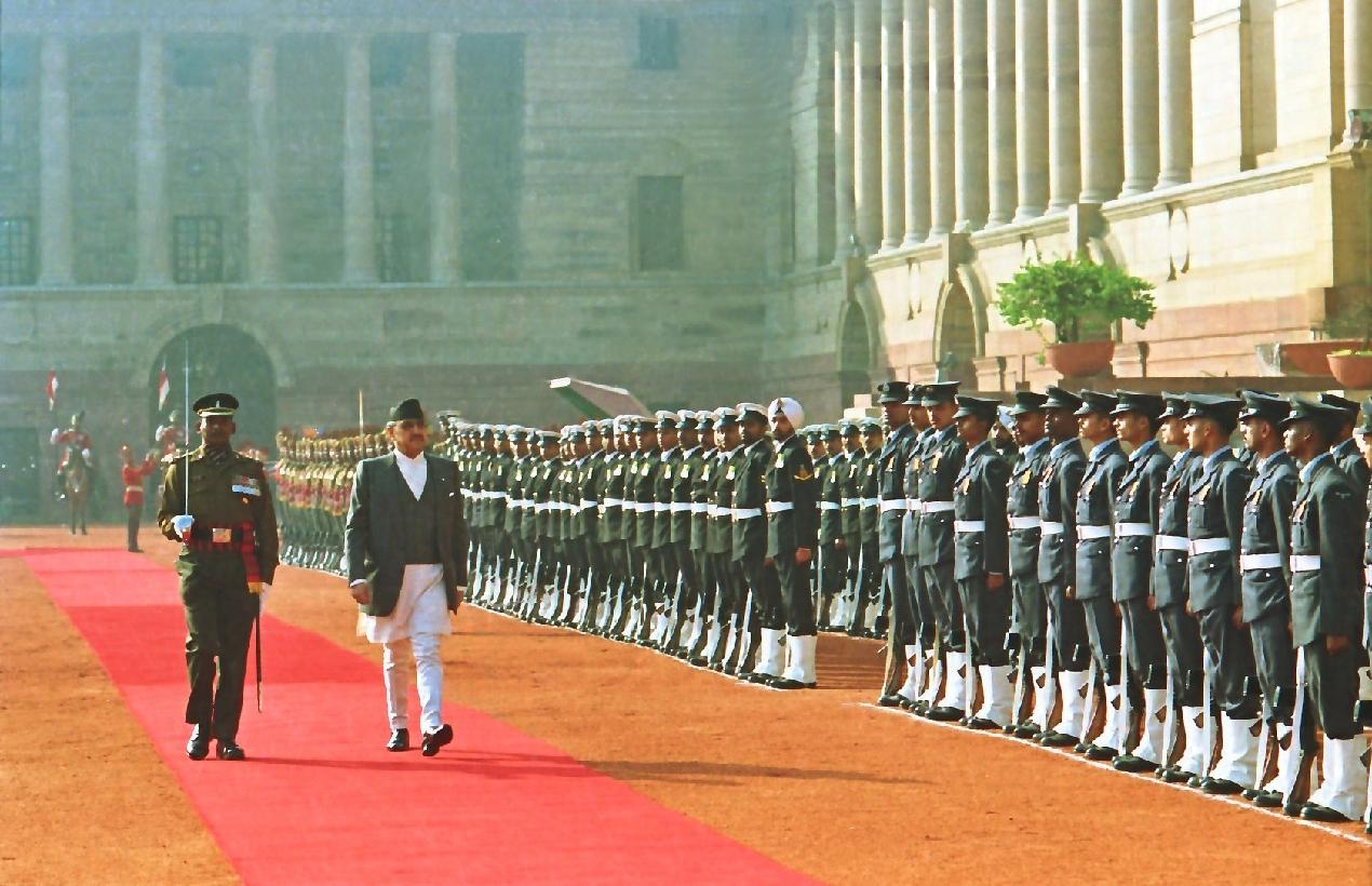 | Caption: | The President of India, Shri K R Narayanan at the Ceremonial Reception of Their Majesties King of Nepal, His Majesty Birendra Bir Bikram Shah Dev and Queen Aishwarya Rajya Laxmi Devi Shah at the Forecourt of Rashtrapati Bhavan in New Delhi on Jan 25, 1999 |