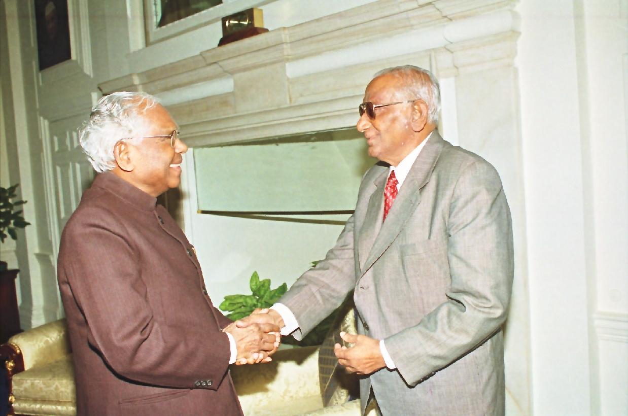 | Caption: | The Vice President of the Republic of Mauritius, HE Mr A V Chettiar calling on the President of India, Shri K R Narayanan at the Study of Rashtrapati Bhavan in New Delhi on Jan 05, 1999 |