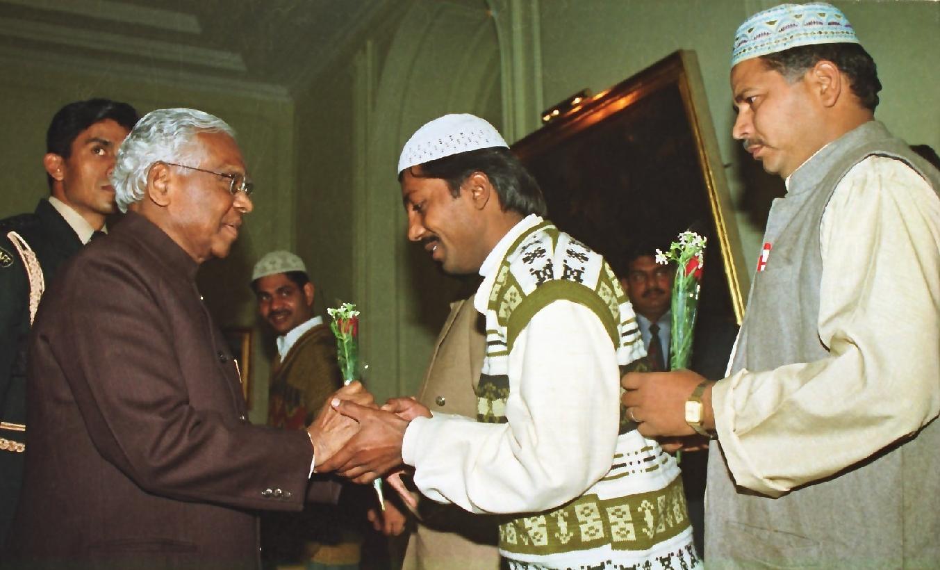 | Caption: | The President of India, Shri K R Narayanan receiving the Id-ul-Fitr Greetings from the Staff of General Public at the Yellow Drawing Room of Rashtrapati Bhavan in New Delhi on Jan 08, 2000 |