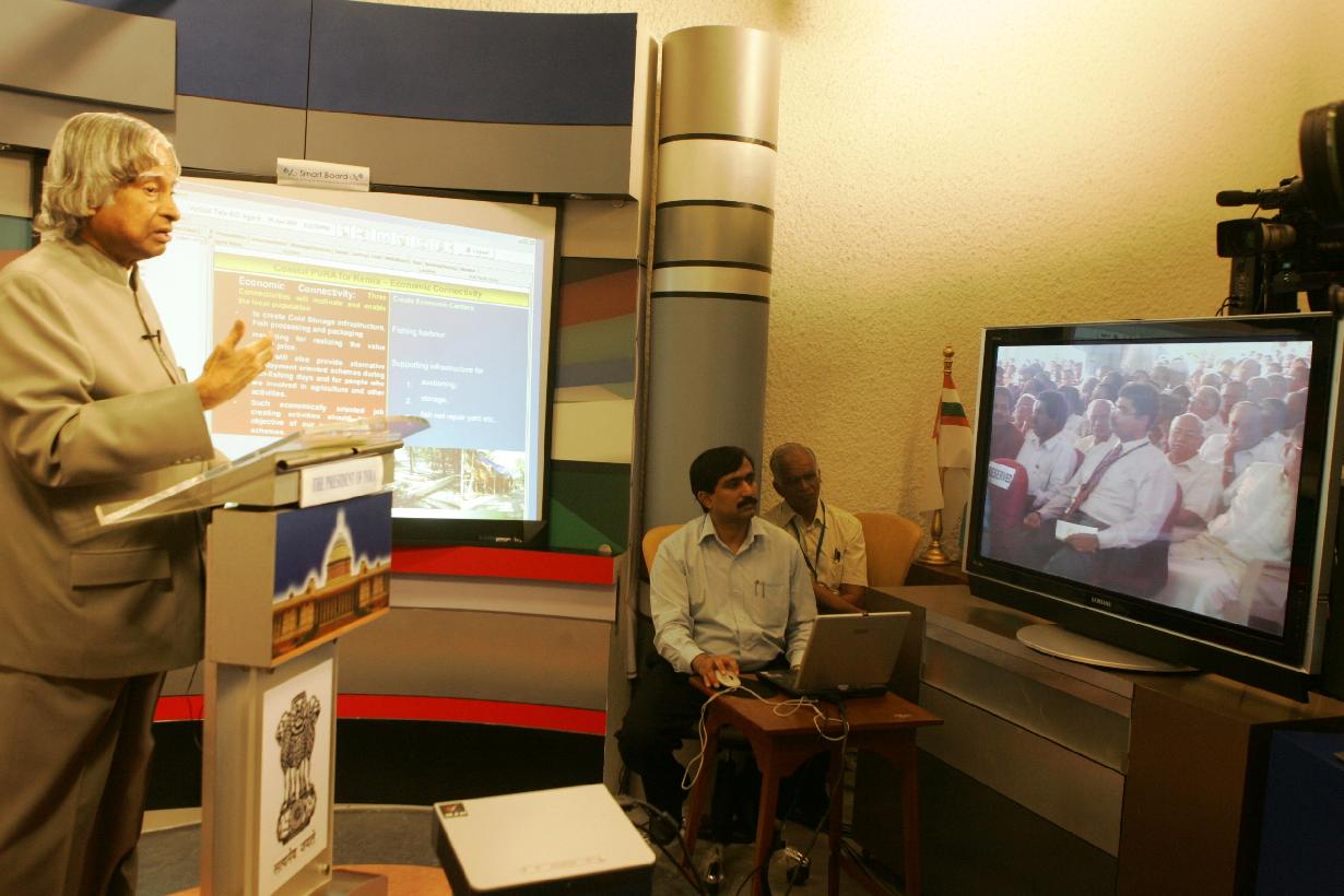 | Caption: | The President of India, Dr A P J Abdul Kalam inaugurating the Golden Jubilee Celebrations of the TKM College of Engineering, Kollam through Multi Media Video Conferencing at the Multi Media Studio of Rashtrapati Bhavan in New Delhi on June 19, 2007 |