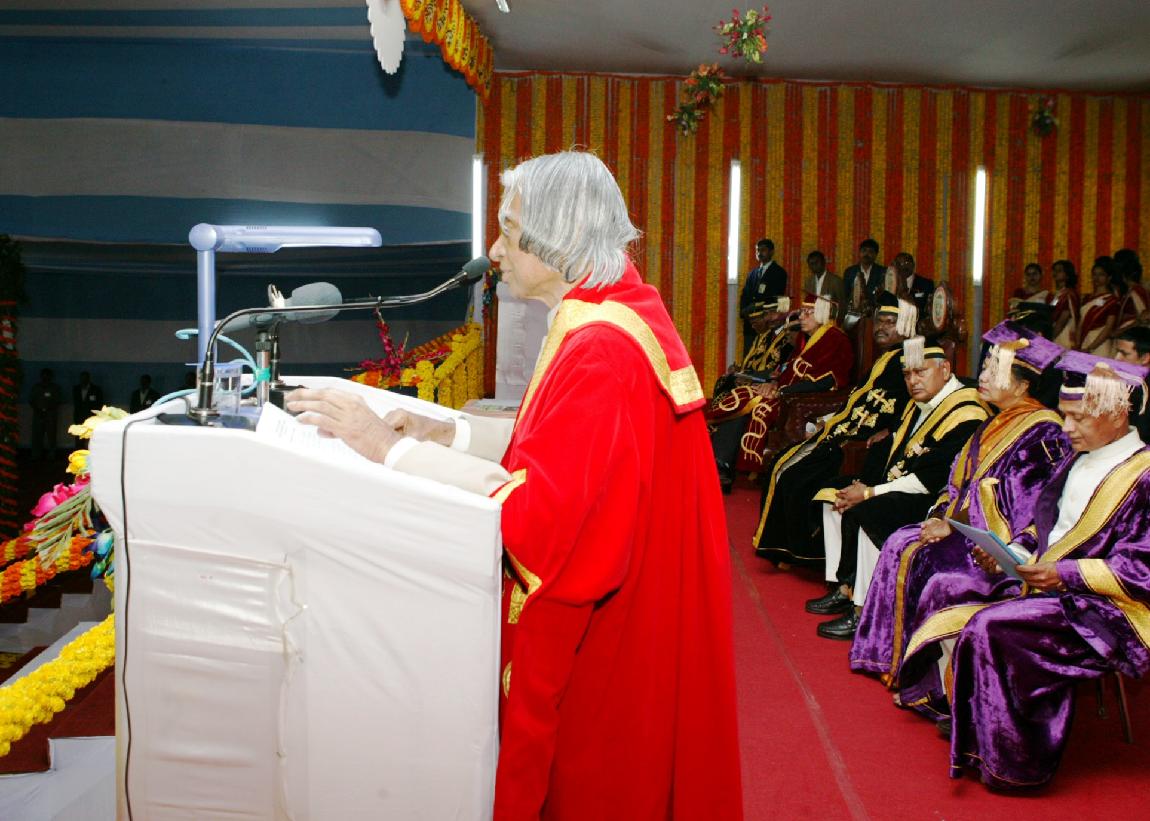 | Caption: | The President of India, Dr A P J Abdul Kalam addressing at the Convocation University at Ranchi in Jharkhand on Feb 13, 2004 |