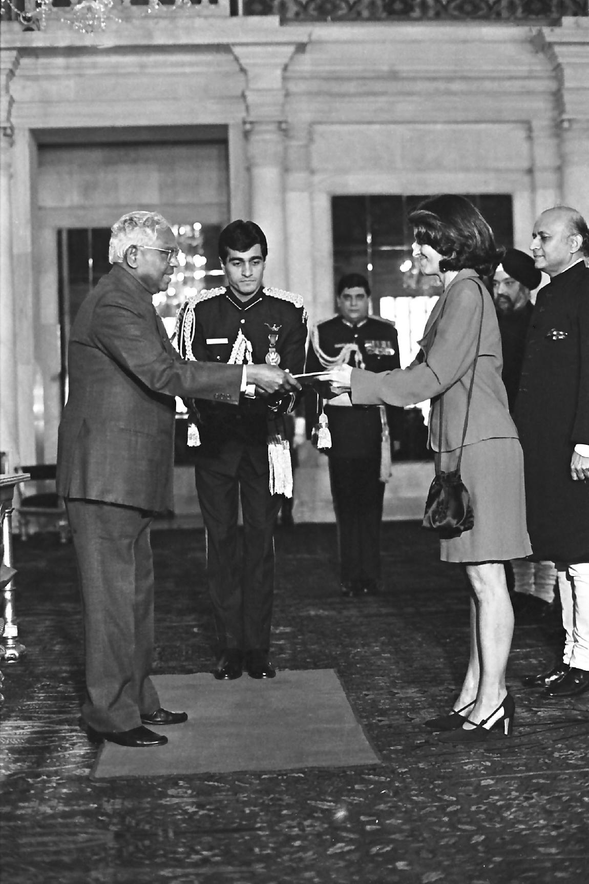 | Caption: | The High Commissioner-Designate of the Republic of Cyprus to India, HE Mrs Rea Yiardamlis presenting his credentials to the President of India, Shri K R Narayanan at the Ashok Hall of Rashtrapati Bhavan in New Delhi on Nov 27, 1997 |