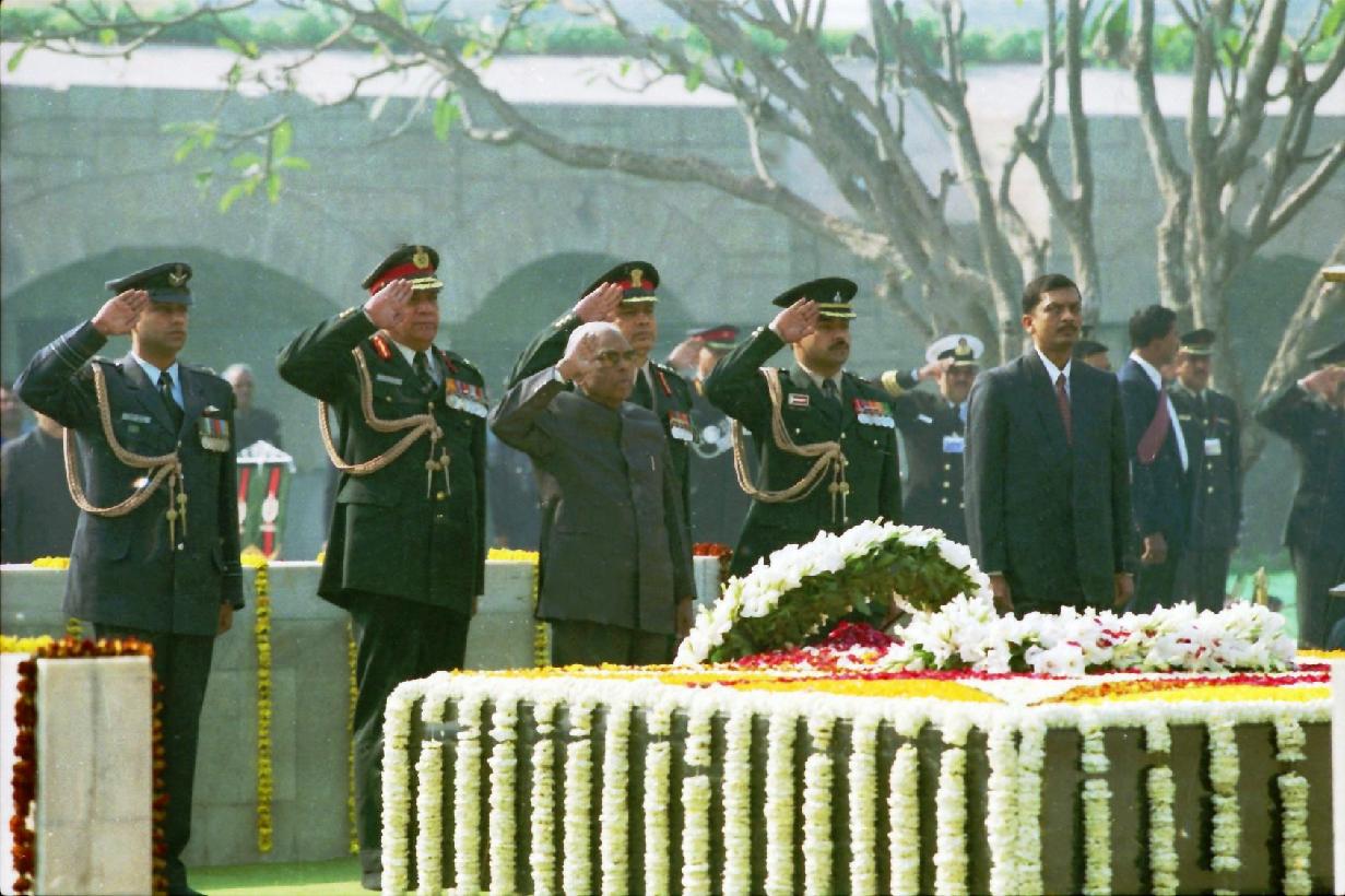 | Caption: | The President of India, Shri K R Narayanan paying homage to the Father of the Nation Mahatma Gandhi at Rajghat in New Delhi on Jan 30, 2002 |