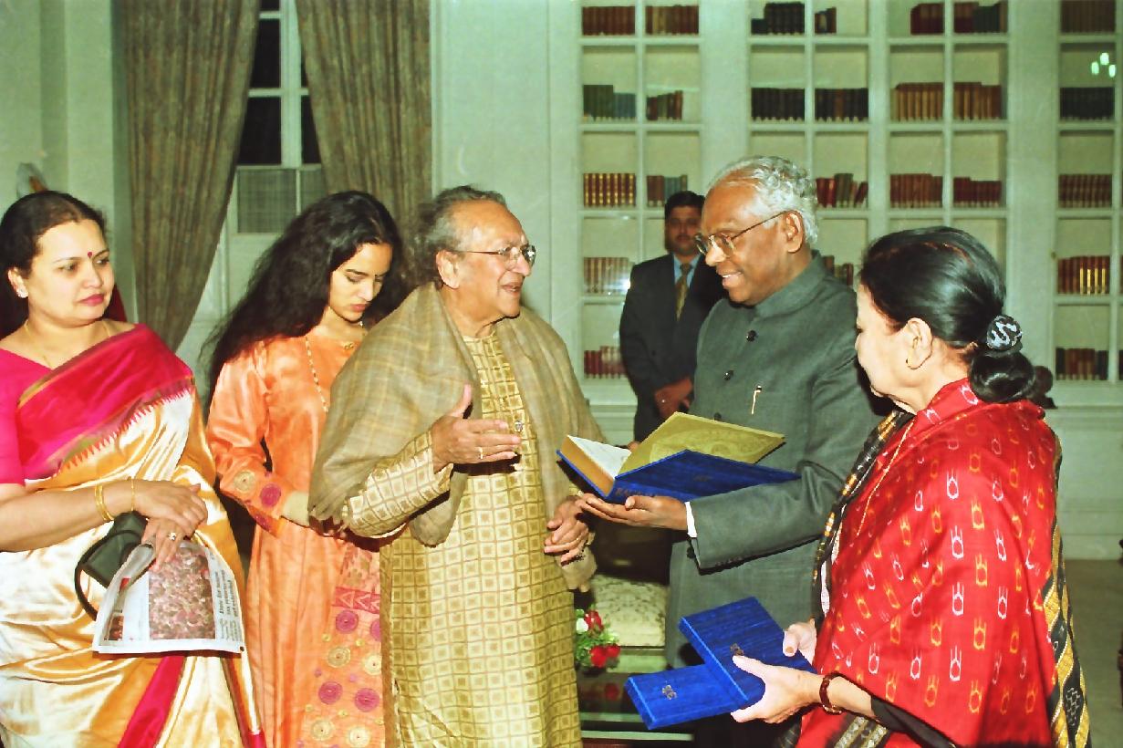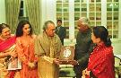 | Caption: | The President of India, Shri K R Narayanan receiving a copy of Autobiography of Pandit Ravi Shankar at Rashtrapati Bhavan in New Delhi on Jan 27, 1998 |