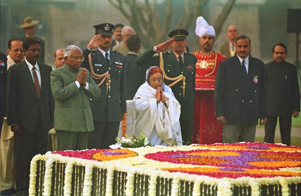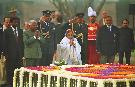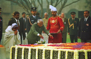 | Caption: | The President of India, Shri K R Narayanan paying homage to the Father of the Nation, Mahatma Gandhi at Rajghat in New Delhi on Jan 30, 1998 |