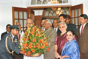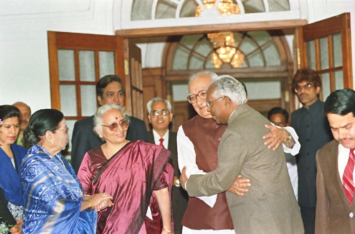 | Caption: | The President of India, Shri K R Narayanan being greeted to the Vice President of India, Shri Krishan Kant on his Birthday at 6, Maulana Azad Road in New Delhi on Feb 28, 1999 |