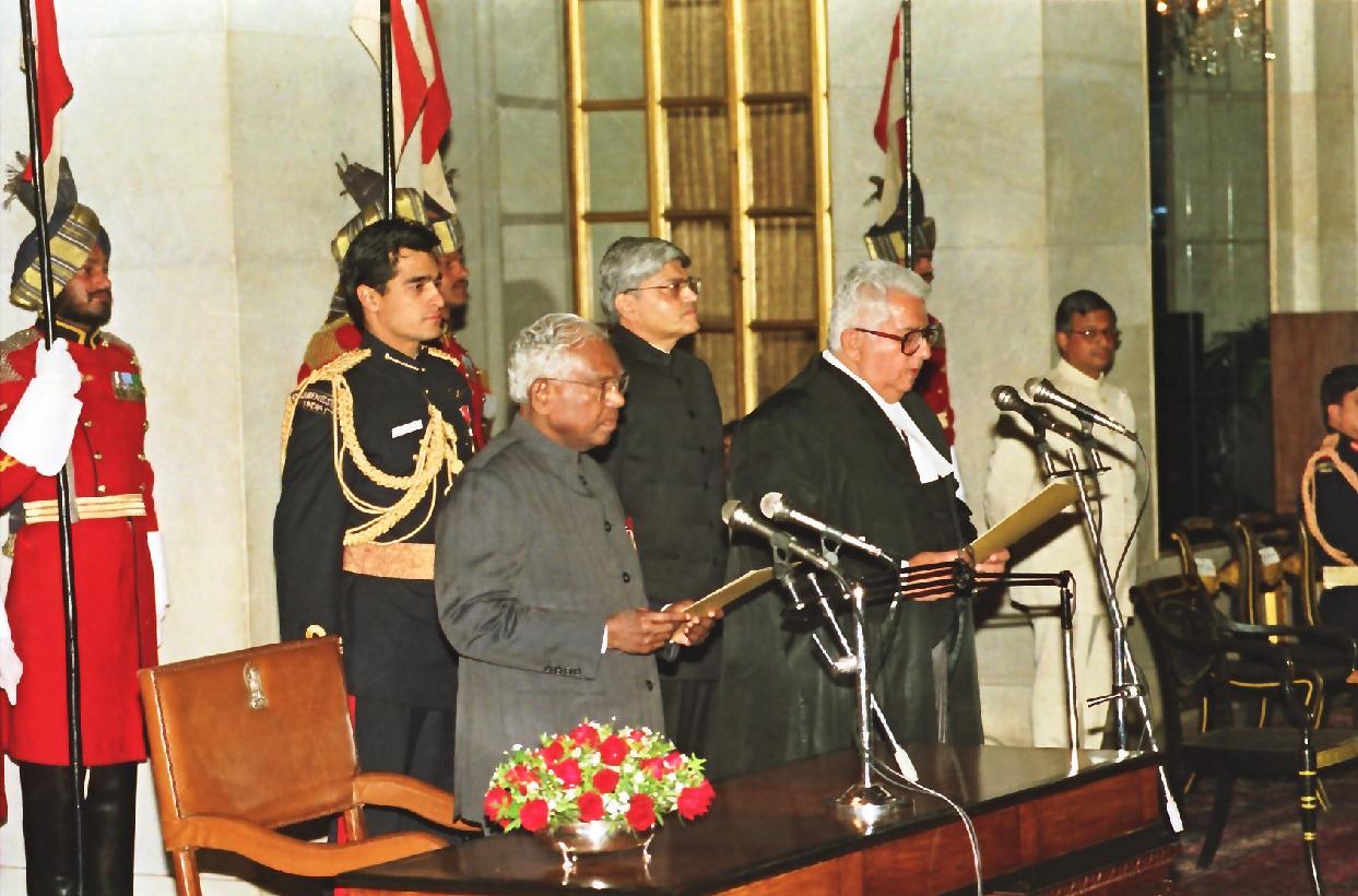 | Caption: | The President of India, Shri K R Narayanan at the Swearing-in-Ceremony of the Chief Justice of India, Shri Madan Mohan Punchhi at the Ashok Hall of Rashtrapati Bhavan in New Delhi on Jan 18, 1998 |