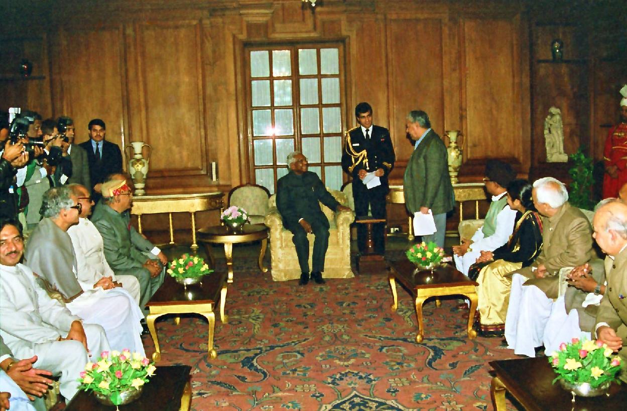 | Caption: | The President of India, Shri K R Narayanan meeting with the Members and Officials of Parliamentary Committee on Official Language to presenting the 6th Volume of their Report by Shri Indrajit Gupta at the Committee Room of Rashtrapati Bhavan in New Delhi on Nov 27, 1997 |