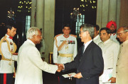 | Caption: | The Ambassador-Designate of the Peoples Republic of China to India, His Excellency Mr Zhou Gang presenting his credentials to the President of India, Shri K R Narayanan at Rashtrapati Bhavan in New Delhi on June 01, 1998 |