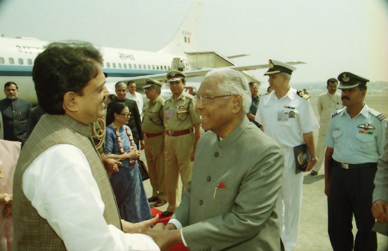 | Caption: | The President of India, Shri K R Narayanan being welcomed by the Chief Minister of Maharashtra, Shri Vilasrao Deshmukh Mumbai Airport in Maharashtra on Feb 16, 2001 |