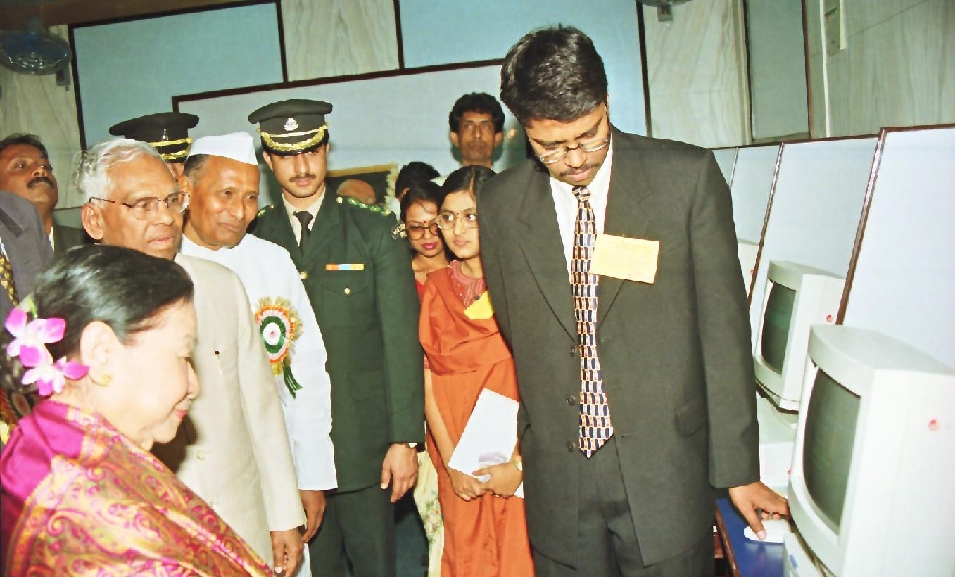 | Caption: | The President of India, Shri K R Narayanan inaugurating the Bharatiya Vidya Bhavan Computer Centre at Calcutta in West Bengal on Feb 12, 1999 |