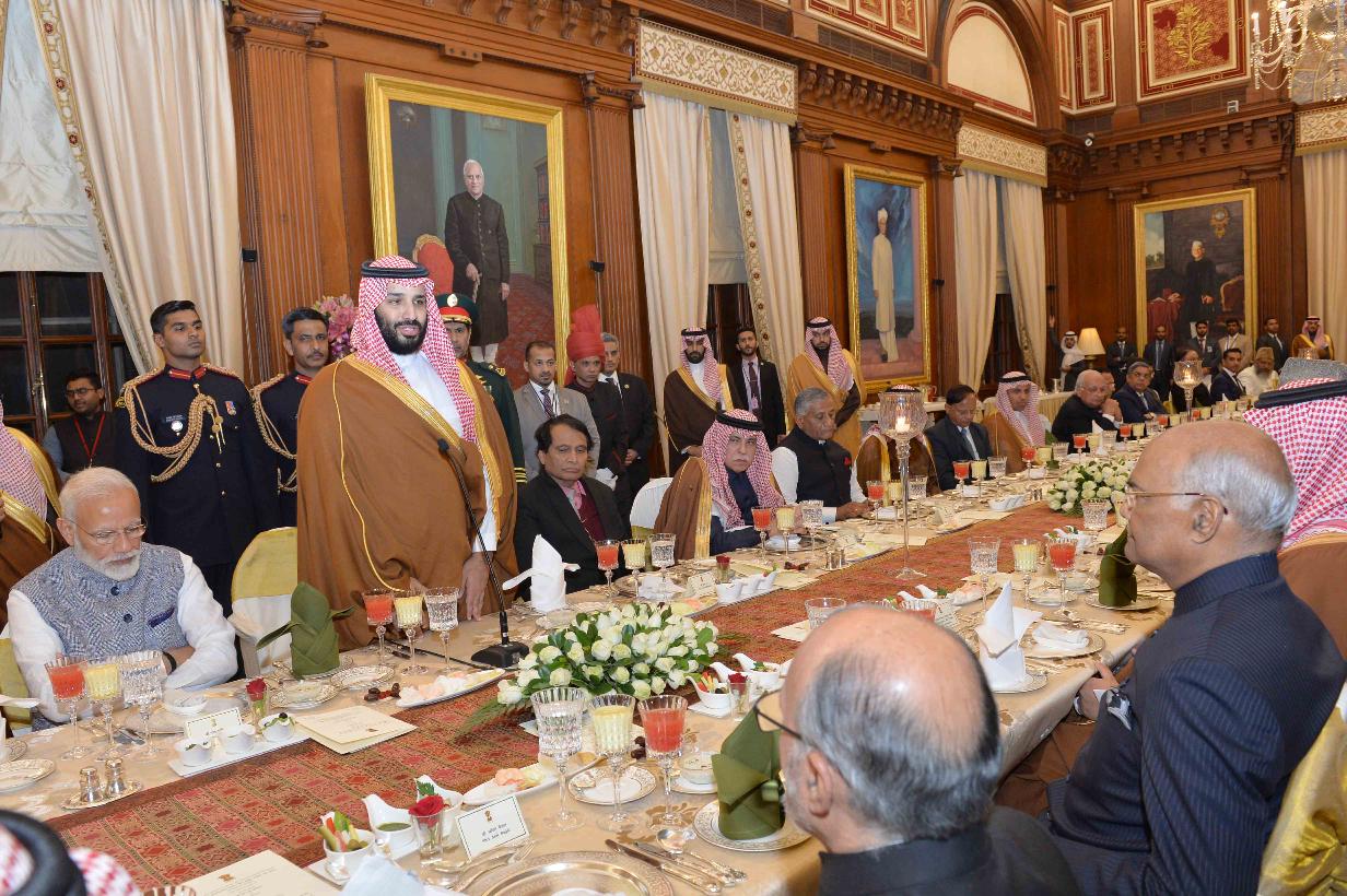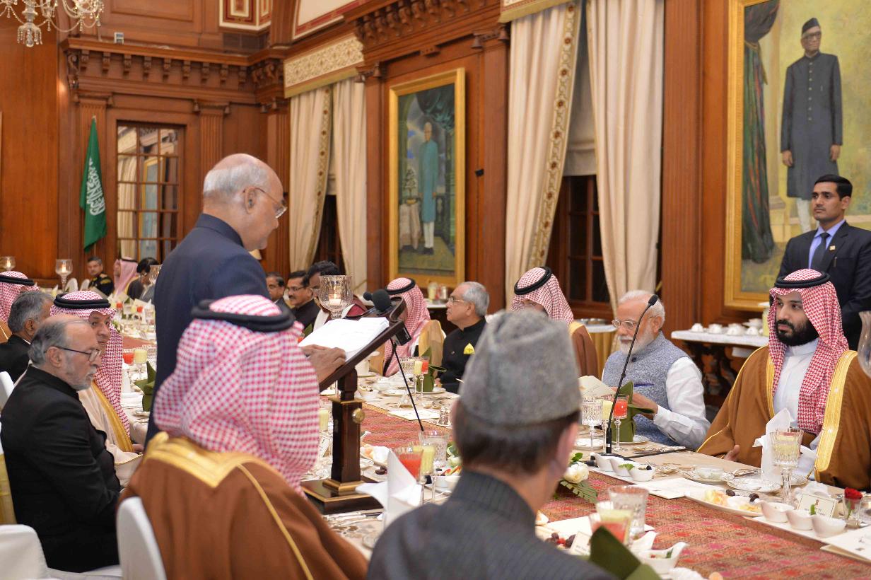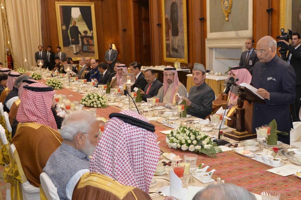 | Caption: | The President of India, Shri Ram Nath Kovind hosting a Banquet in honour of His Royal Highness Prince Mohammed Bin Salman Bin Abdulaziz Al-Saud, Crown Prince, Vice President of the Council of Ministers and Minister of Defence of the Kingdom of Saudi Arabia, at Rashtrapati Bhavan on February 20, 2019. |