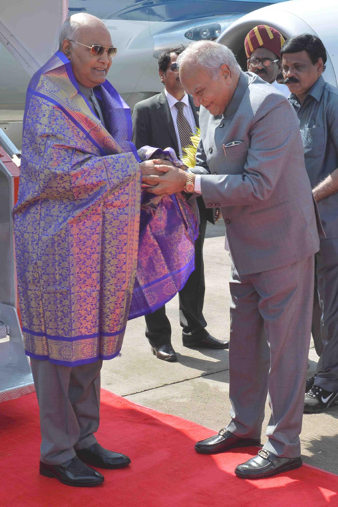 | Caption: | The President of India, Shri Ram Nath Kovind being received by the Governor, Tamil Nadu, Shri Banwarilal Purohit, the Chief Minister, Tamil Nadu, Shri Edappadi K. Palaniswami and the Dy. Chief Minister, Tamil Nadu, Shri O. Panneerselvam, in Chennai on February 21, 2019. |