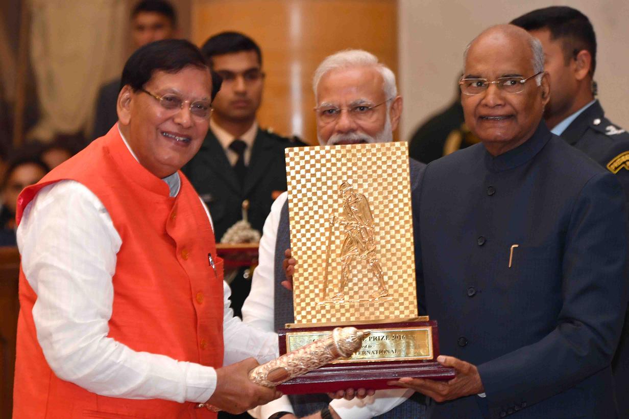 | Caption: | The President of India, Shri Ram Nath Kovind presenting the Gandhi Peace Prize for the years 2015, 2016, 2017 and 2018, at Rashtrapati Bhavan on February 26, 2019. |
