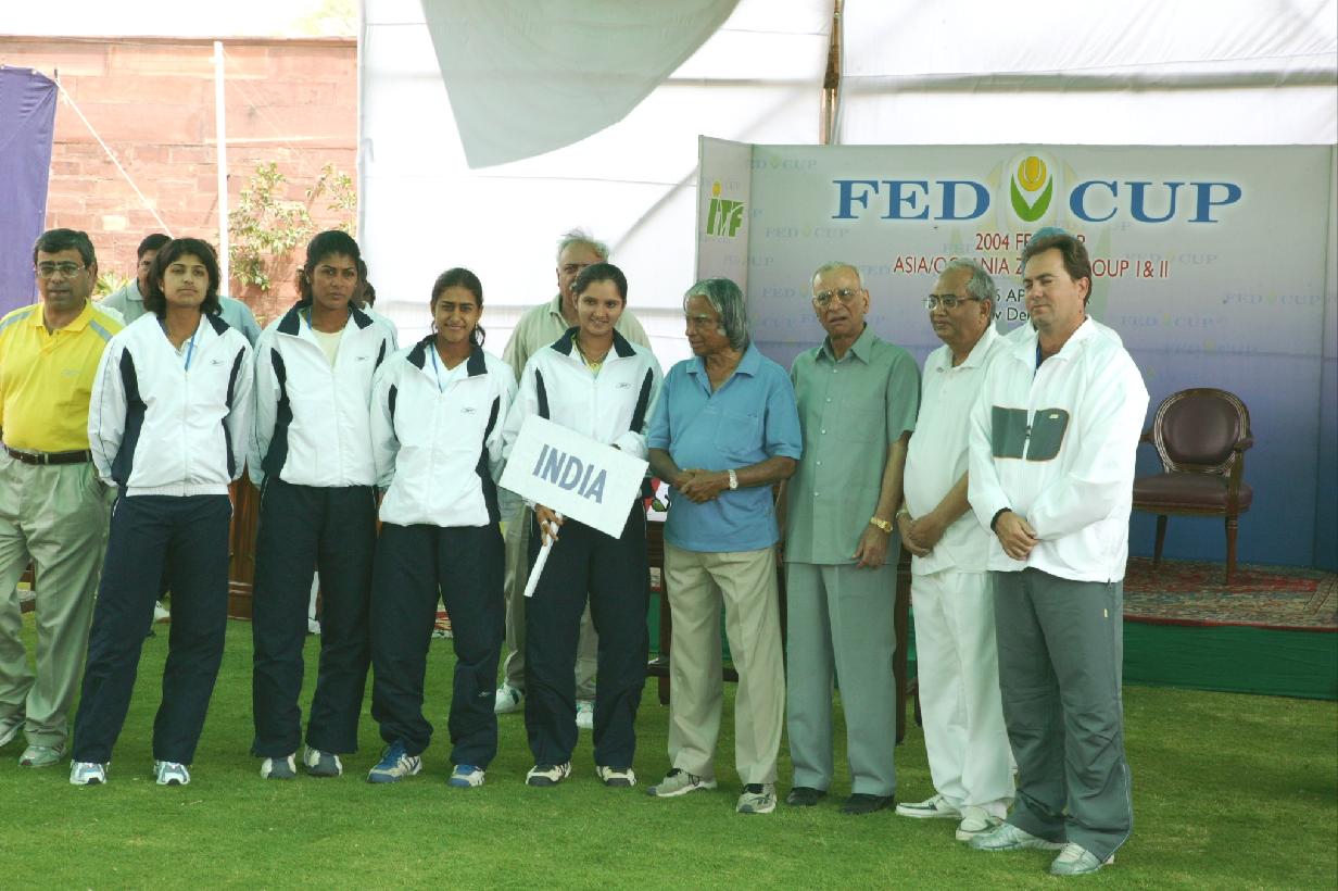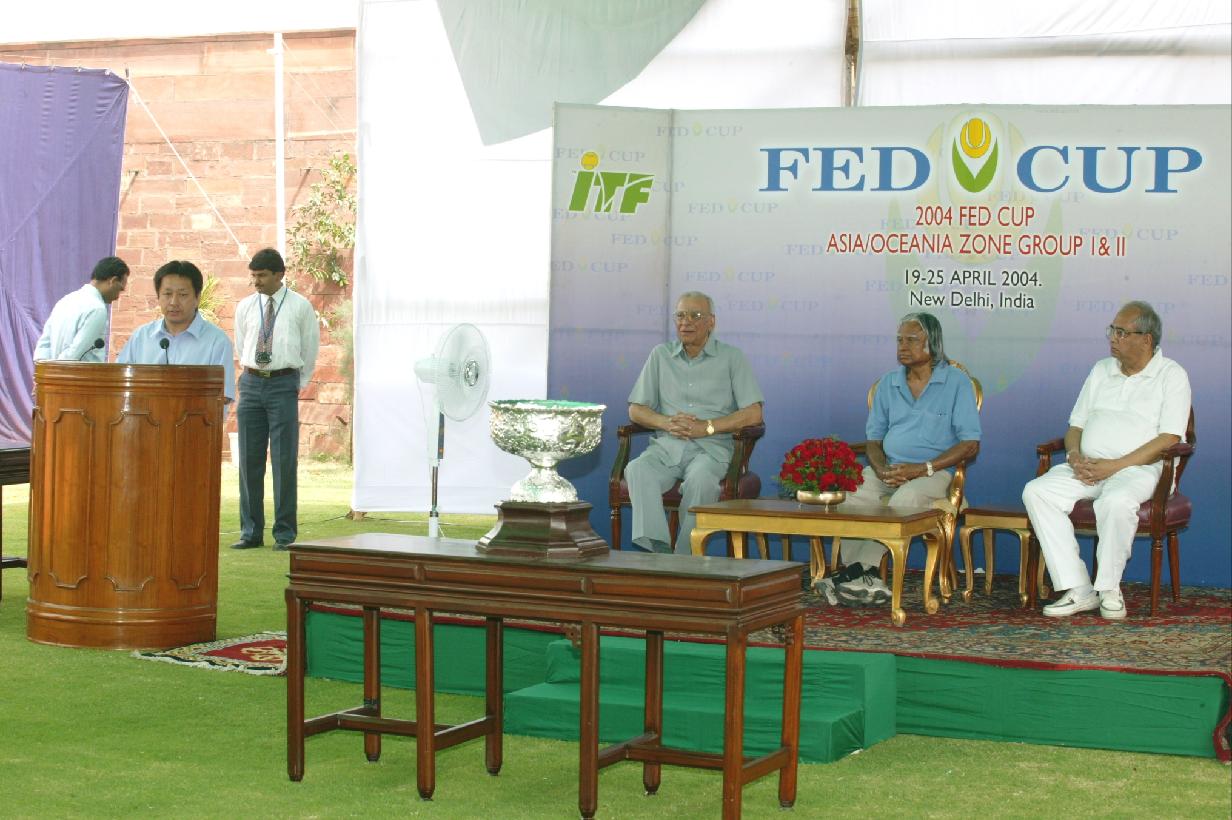 | Caption: | The President of India, Dr A P J Abdul Kalam taking out the Draw of Group-l for Federation Cup Asia/Oceania Zone in the lawns between Clay Tennis Courts and Mughal Gardens at the Clay Tennis Court of Rashtrapati Bhavan in New Delhi on April 18, 2004 |