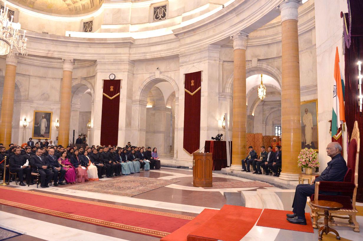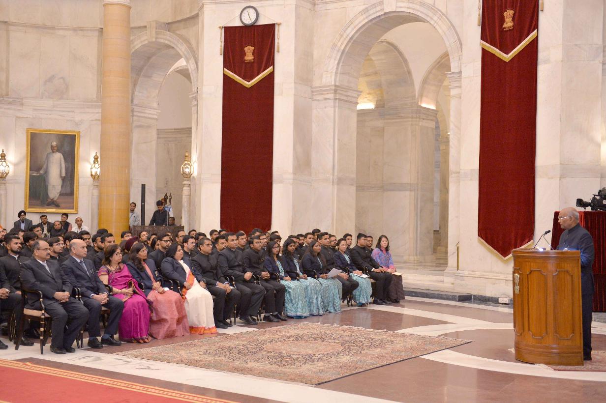 | Caption: | The President of India, Shri Ram Nath Kovind meeting with the Officer Trainees of the 72nd Batch of the Indian Revenue Service, at Rashtrapati Bhavan on March 08, 2019. |