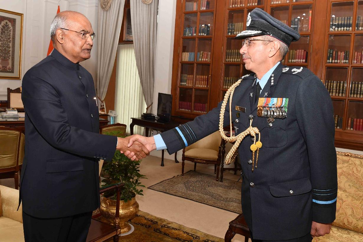 | Caption: | Air Marshal Rajvir Singh, Director General Medical Services (Air) and Hony Surgeon to the President along with his wife Smt. Meera Singh meeting with the President of India, Shri Ram Nath Kovind, at Rashtrapati Bhavan on March 08, 2019. |