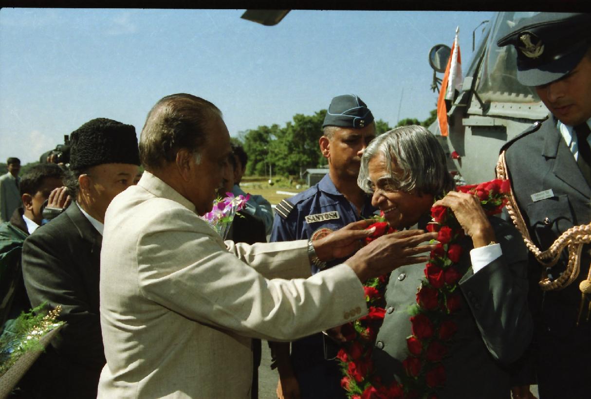 The President of India, Dr A P J Abdul Kalam arriving at Shillong Helipad in Meghalaya on Oct 25, 2002