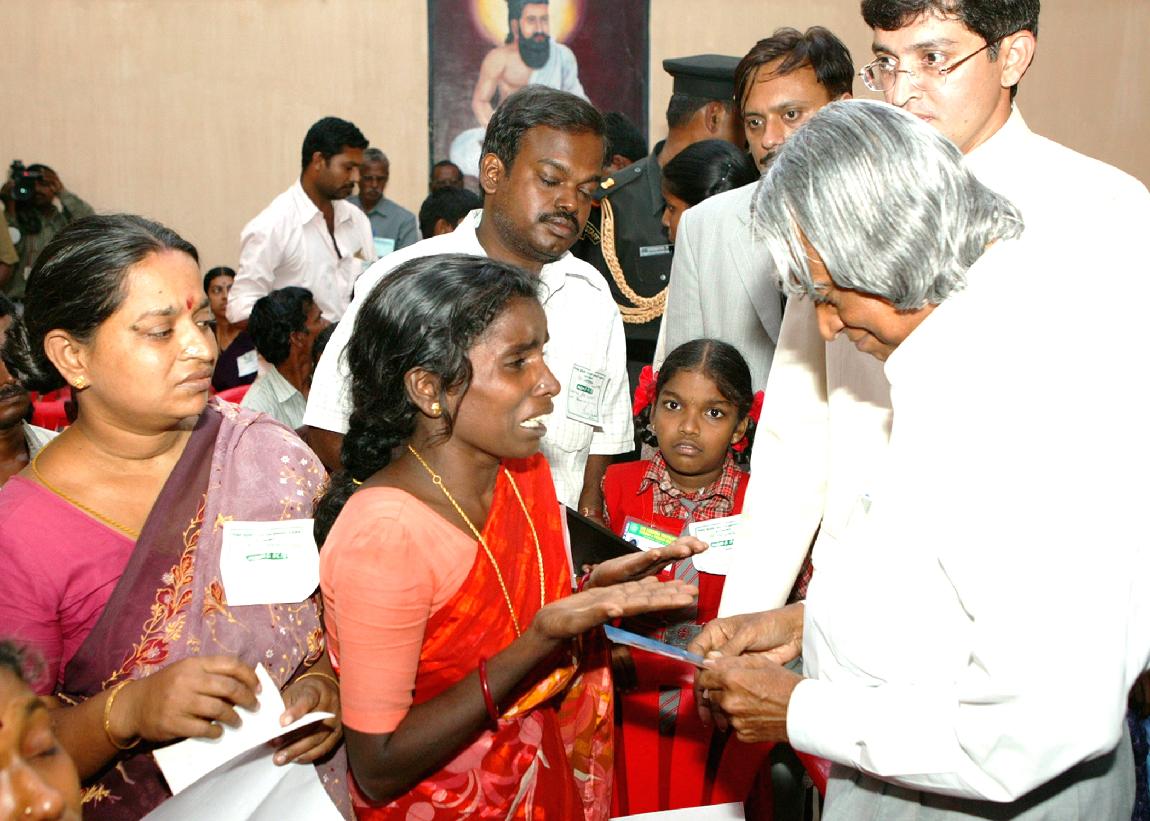 | Caption: | The President of India, Dr A P J Abdul Kalam meeting with the Parents Children Kumbakonam School Involved in the Recent Tragedy at Tiruchirappalli in Tamil Nadu on Aug 26, 2004 |