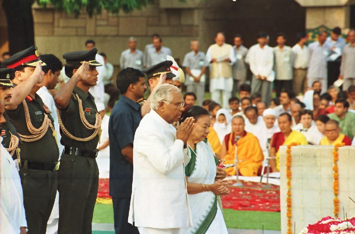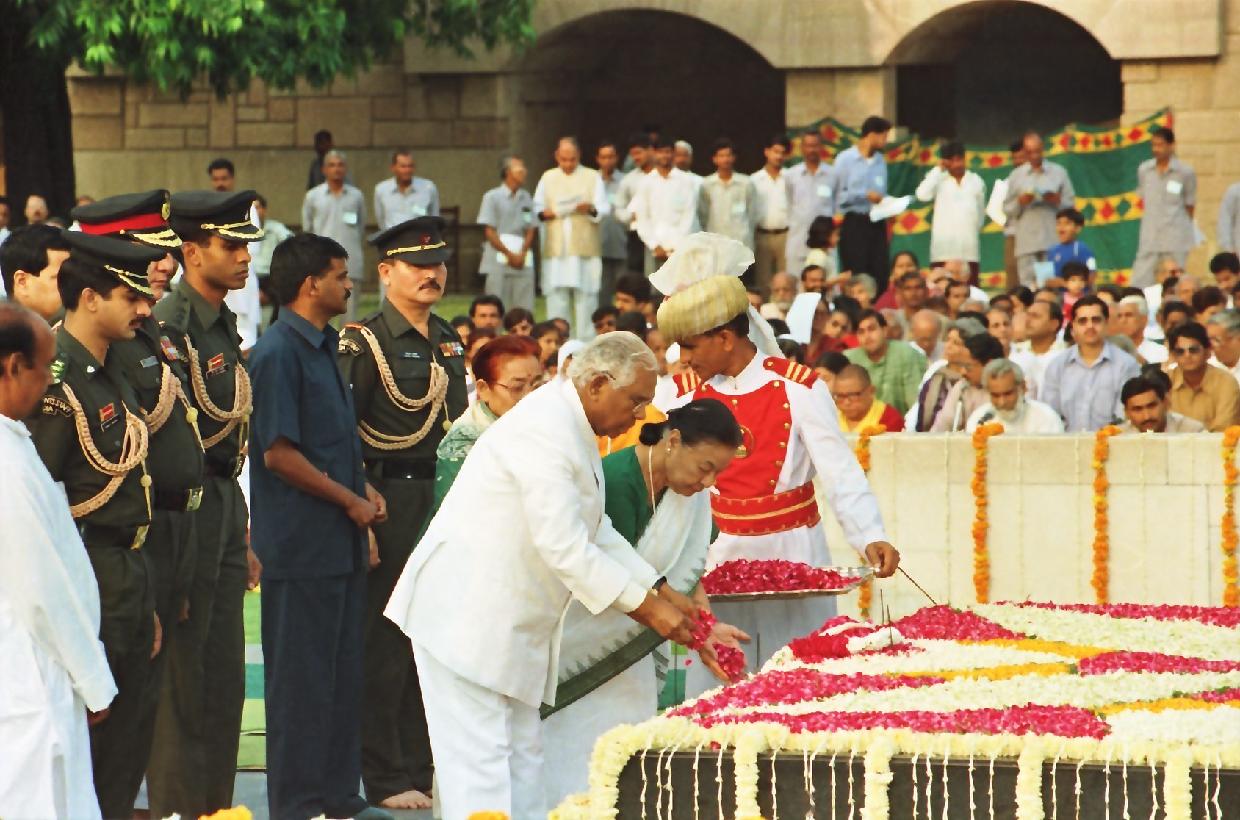 | Caption: | The President of India, Shri K R Narayanan paying homage to the Father of Nation, Late Mahatma Gandhi on the occasion of his 130 Birth Anniversary at Rajghat in New Delhi on Oct 02, 1999 |