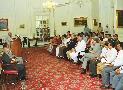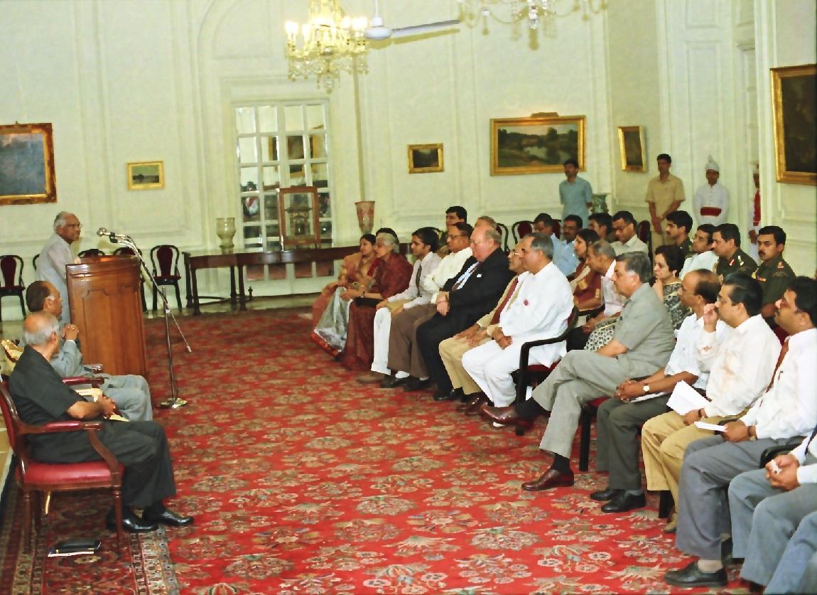 | Caption: | The President of India, Shri K R Narayanan receiving a copy of the Book Poverty of Nations from Prof A M Khusro Chairman Finance Commission at the Yellow Drawing Room of Rashtrapati Bhavan in New Delhi on Oct 04, 1999 |