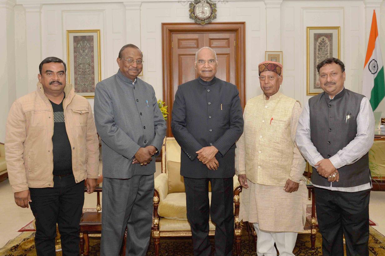 | Caption: | Shri Satyanarayana Pawar, Ex. MP (Lok Sabha), Ujjain with others meeting with the President of India, Shri Ram Nath Kovind, at Rashtrapati Bhavan on January 10, 2019. |