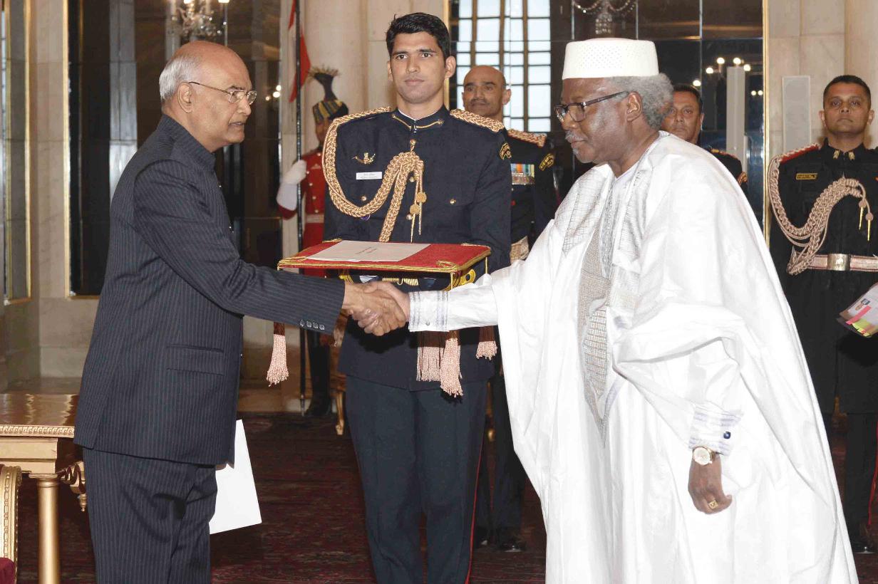 | Caption: | The Ambassador-designate of the Republic of Mali, H.E. Mr. Sekou Kasse presenting his credentials to the President of India, Shri Ram Nath Kovind, at Rashtrapati Bhavan on January 10, 2019. |