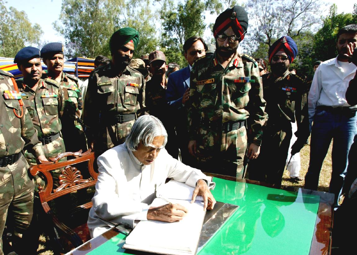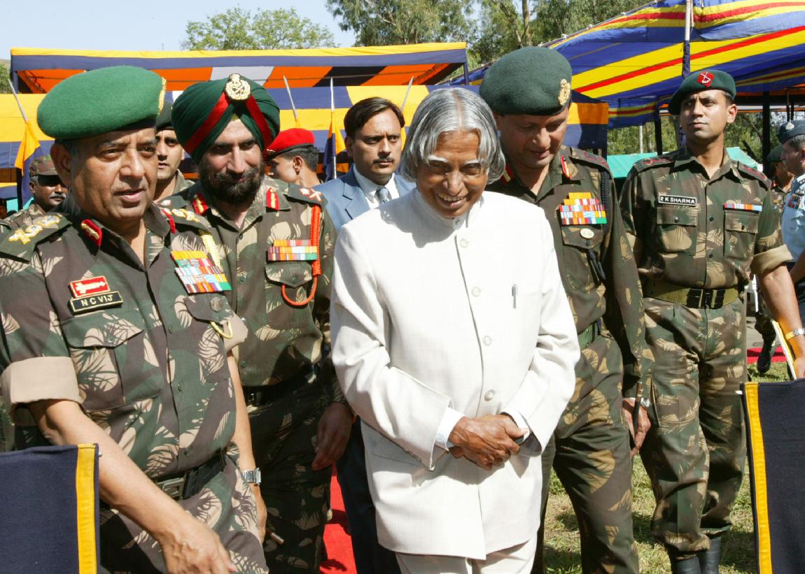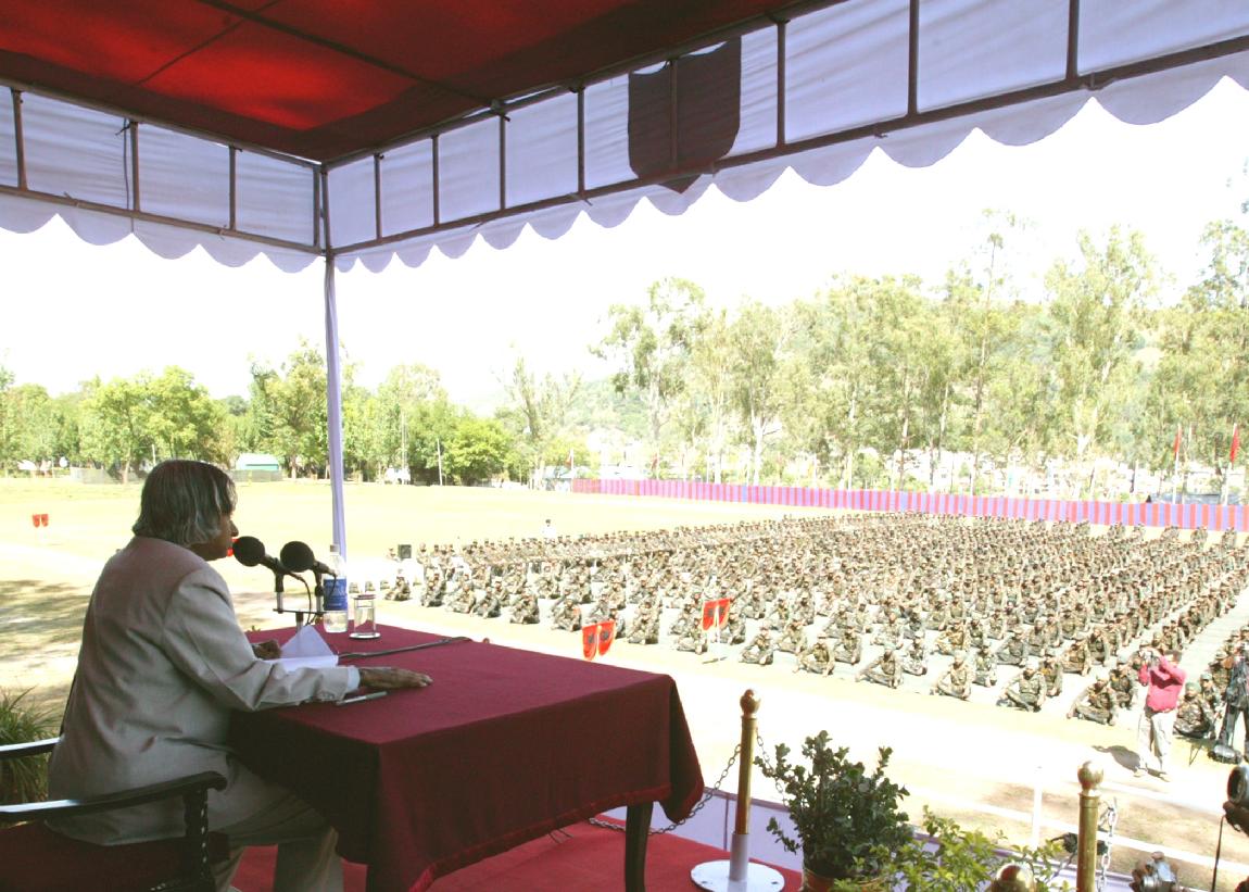 | Caption: | The President of India, Dr A P J Abdul Kalam addressing to the Barakhana Troops at Rajouri in Jammu & Kashmir on May 03, 2004 |