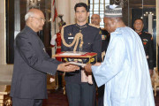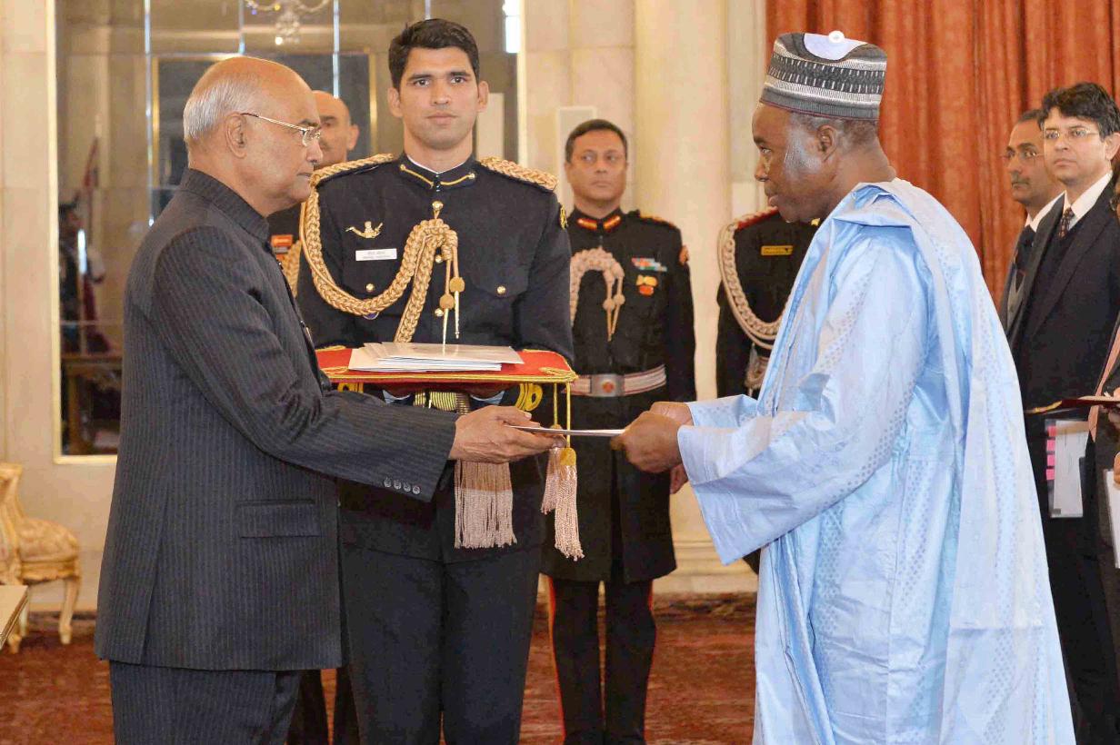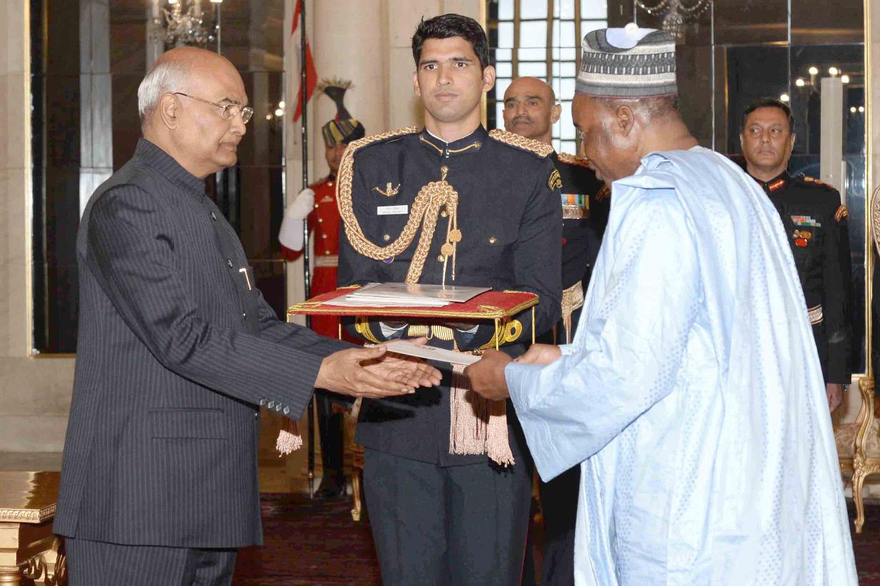 | Caption: | The Ambassador-designate of the Republic of Niger, H.E. Mr. Leko Ado presenting his credentials to the President of India, Shri Ram Nath Kovind, at Rashtrapati Bhavan on January 10, 2019. |